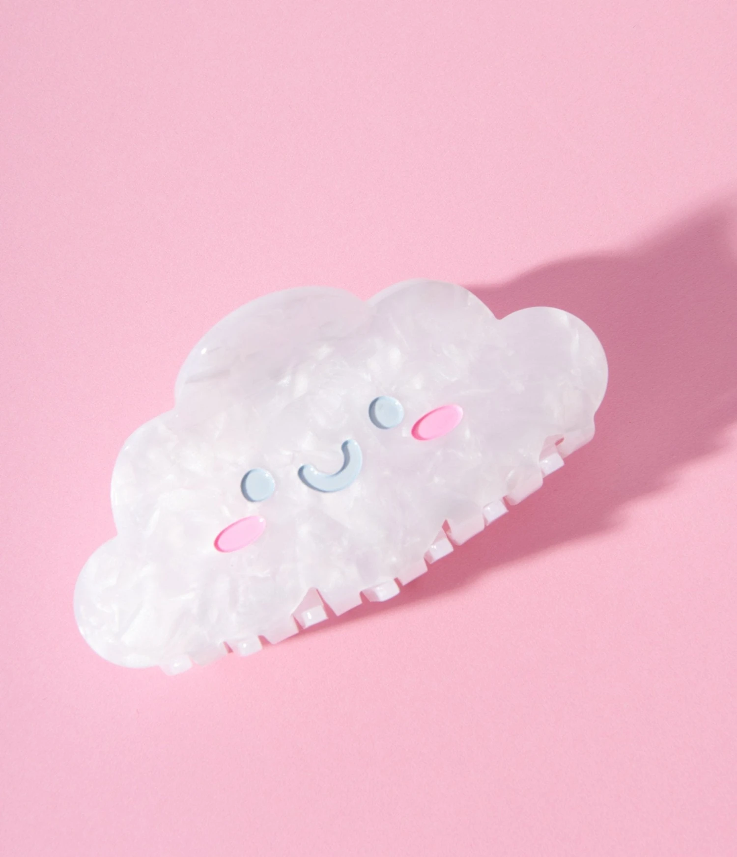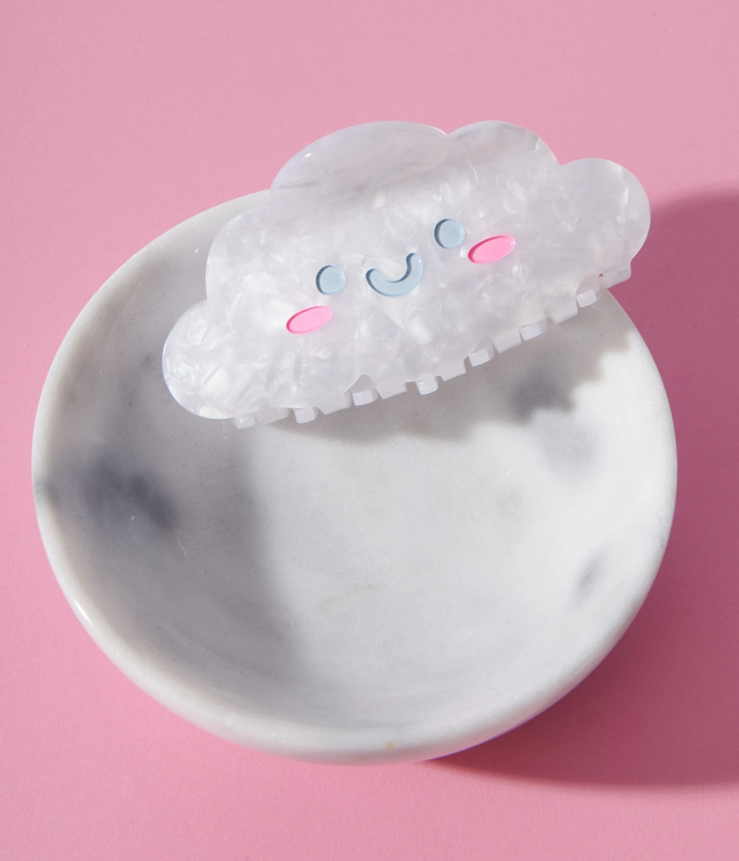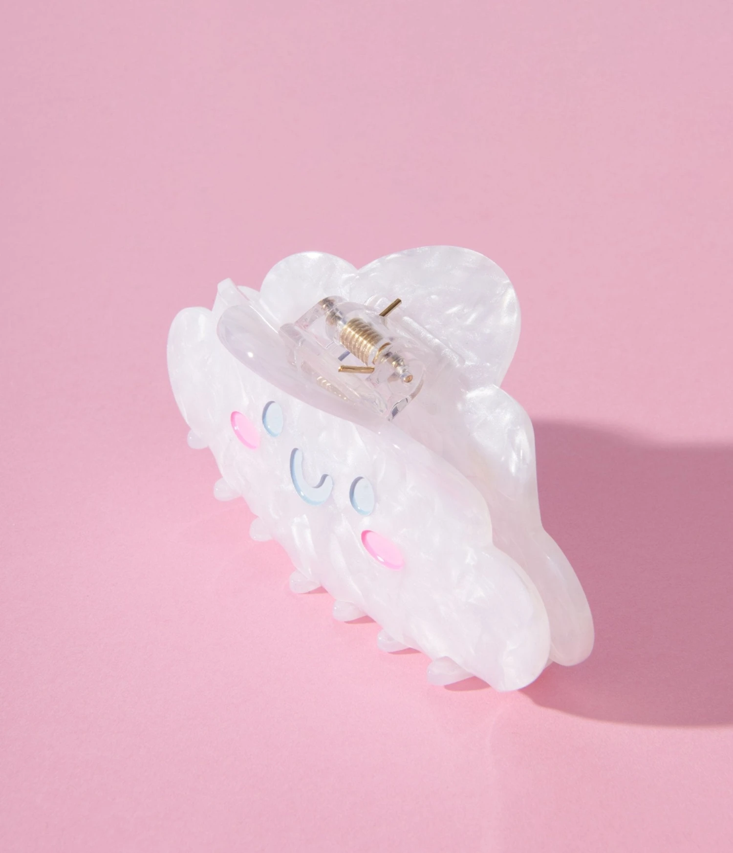 This white pearlescent beauty is delicately shaped like a cloud, adding a touch of whimsy and charm to any hairstyle. But wait, it gets even cuter – this little cloud comes with an adorable face that will make you smile every time you catch a glimpse in the mirror! Crafted with utmost attention to detail, this hair claw not only looks fabulous but also holds your locks securely in place throughout the day.