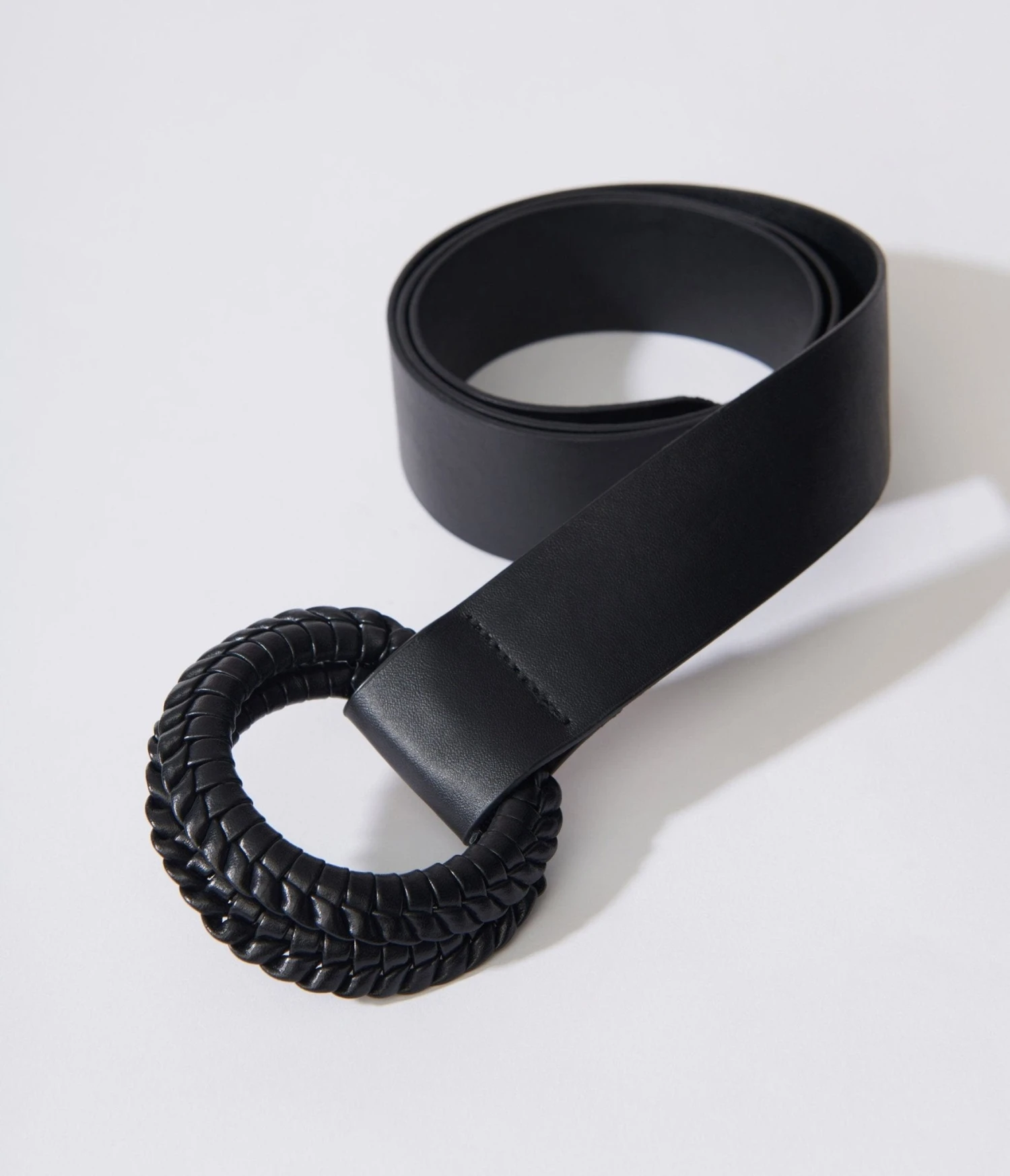 This adorable belt is crafted in a black PU and features a double ring buckle.