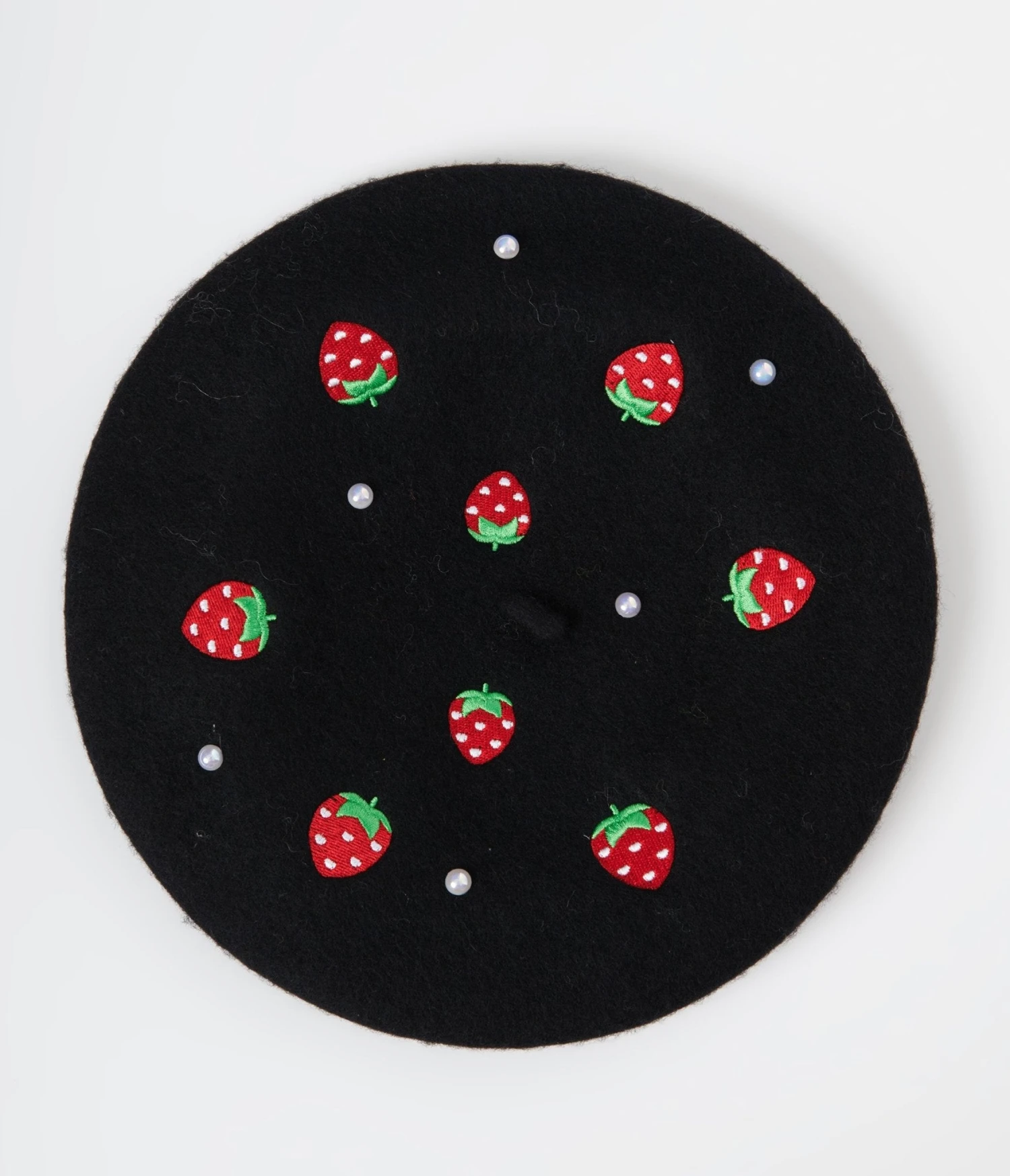 Are you ready to add a pop of sweetness and elegance to your outfits? This chic black beret is beautifully decorated with delicate embroidered strawberries and faux pearls. Not only will it keep you warm during colder days, but it also adds that extra touch of charm to any ensemble.