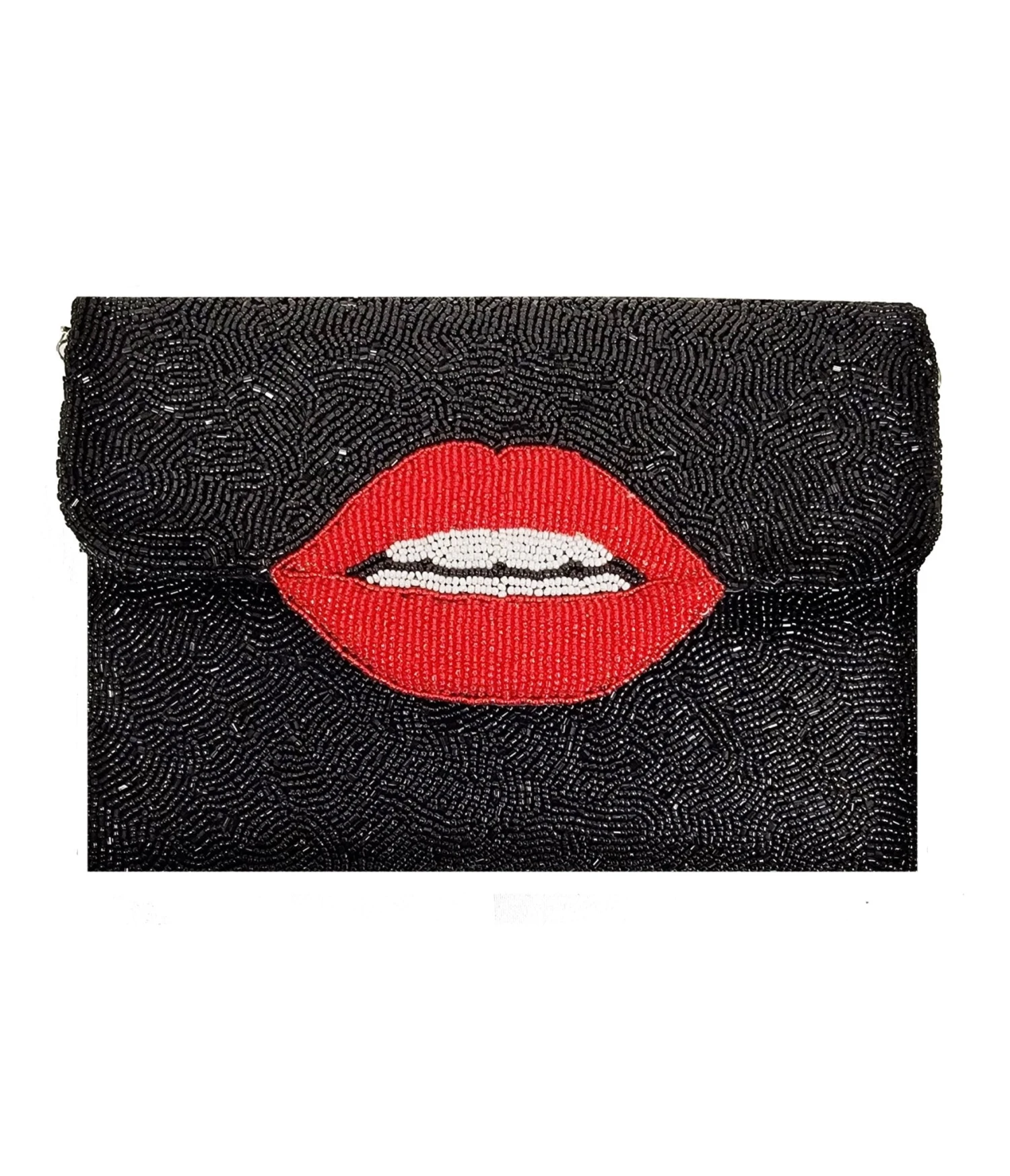Black & Red Lips Beaded Clutch