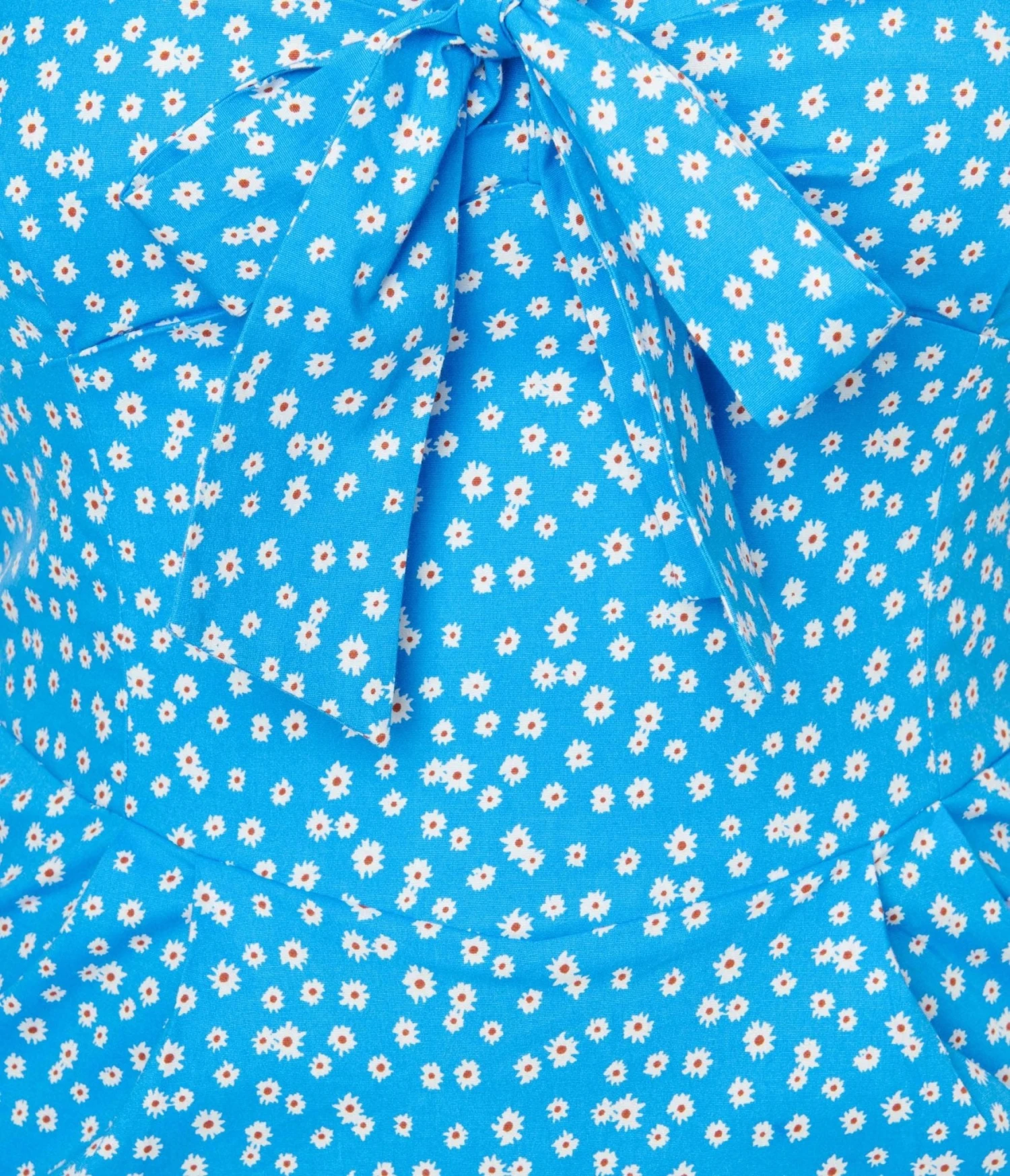 This stunning 1950’s style wiggle halter dress is crafted in a light blue woven with white daisies throughout. This dress is perfect for summer outings, weddings, or any special occasion. The halter top complements the feminine floral pattern of the dress, making it a must-have for any fashionista’s wardrobe. Complete with side pockets, back vent and back zipper.