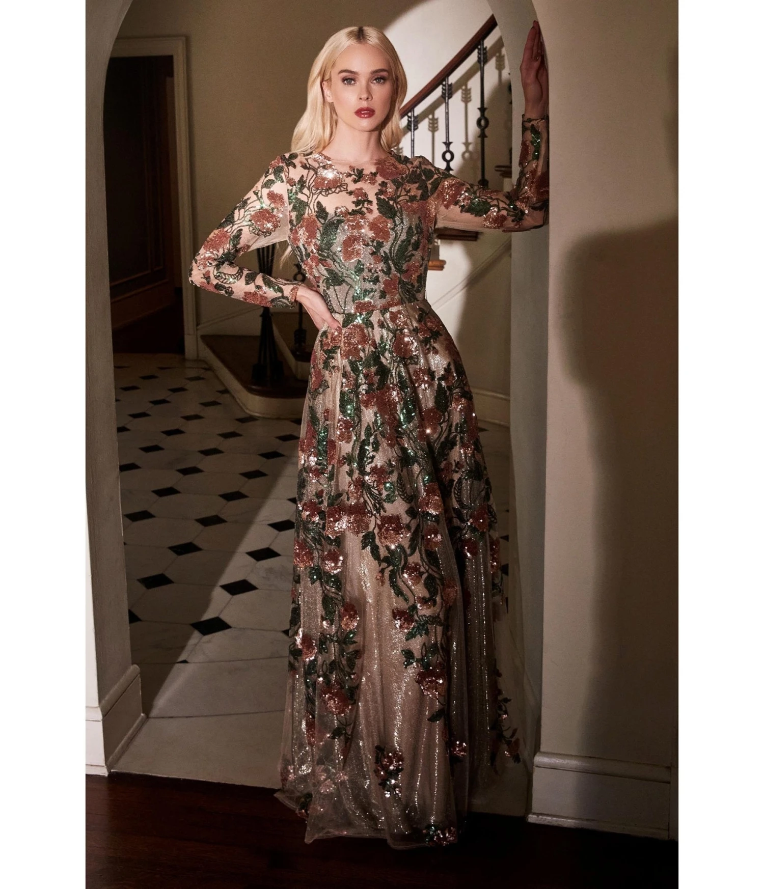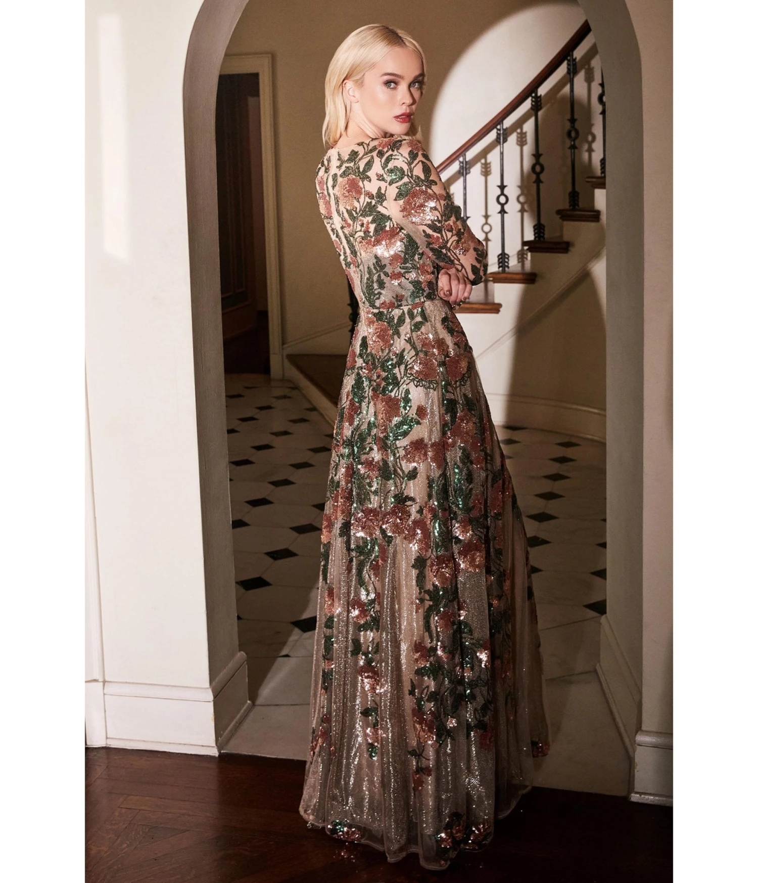 Cinderella Divine Copper Floral Sequin Savannah Gown
