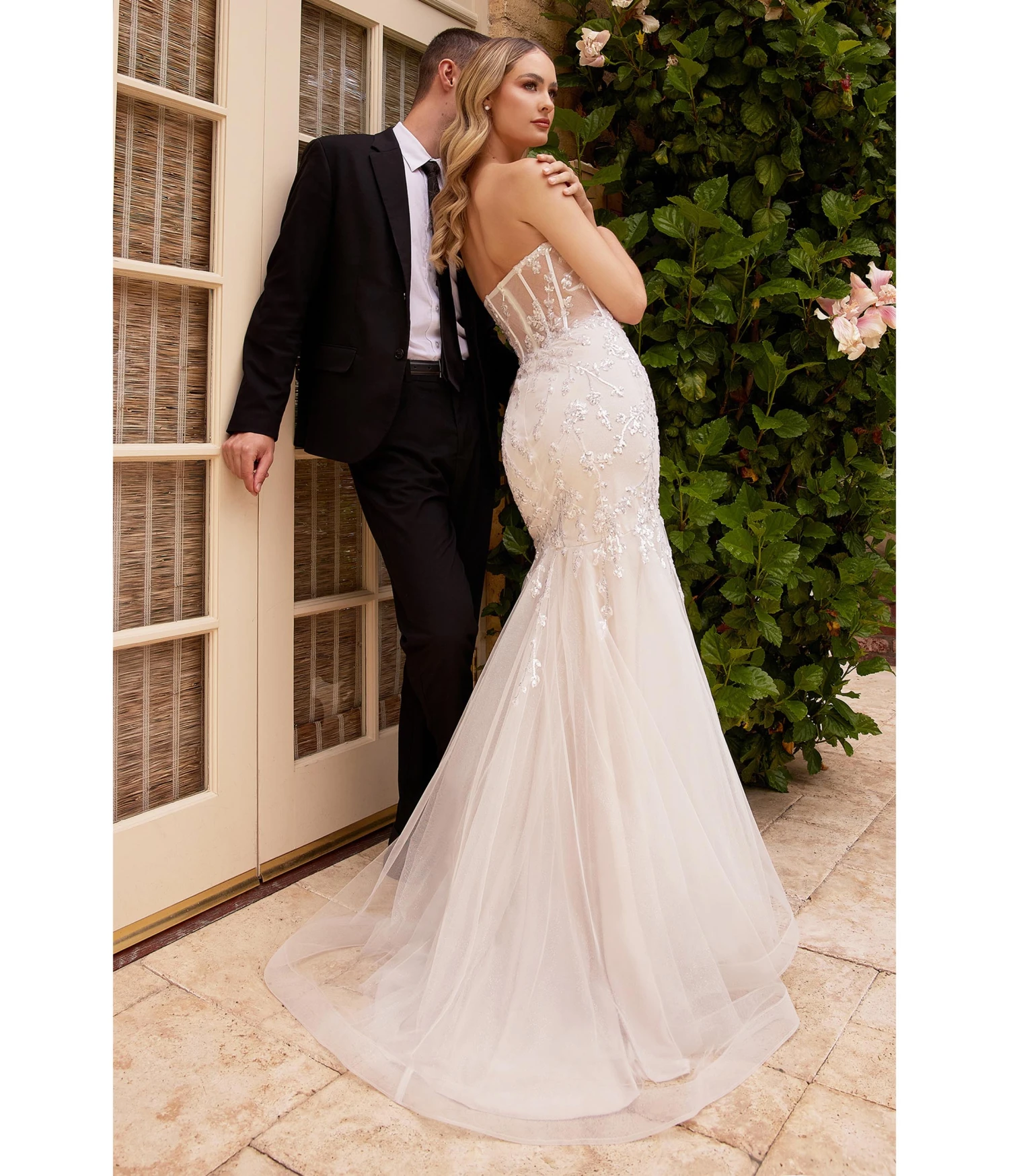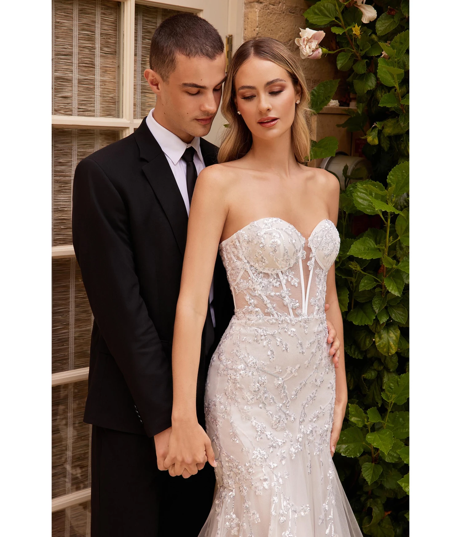 Cinderella Divine French White Floral Embellished Mermaid Bridal Gown