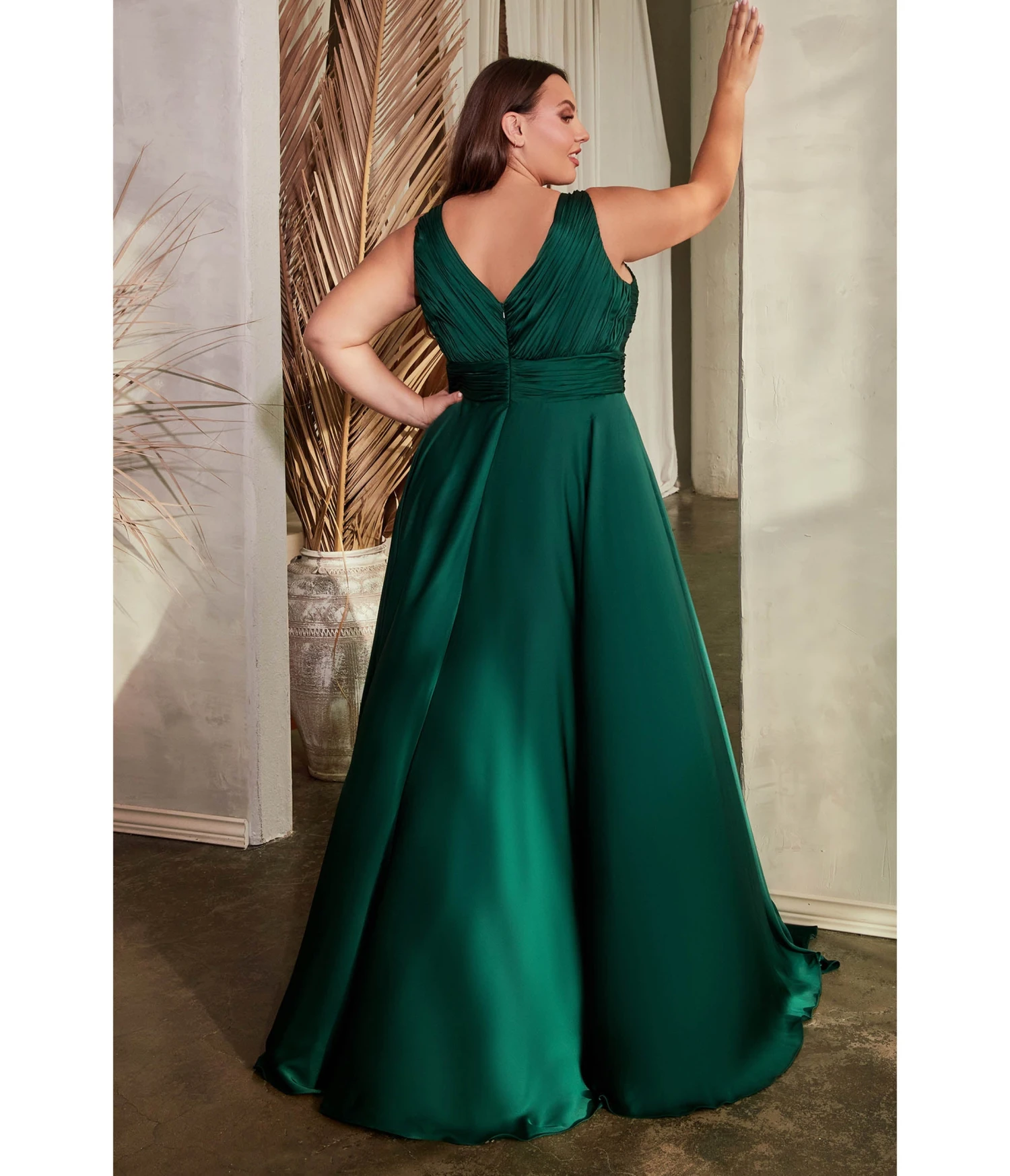 Cinderella Divine Plus Size Hunter Green Satin Ruched Knotted Keyhole Evening Gown
