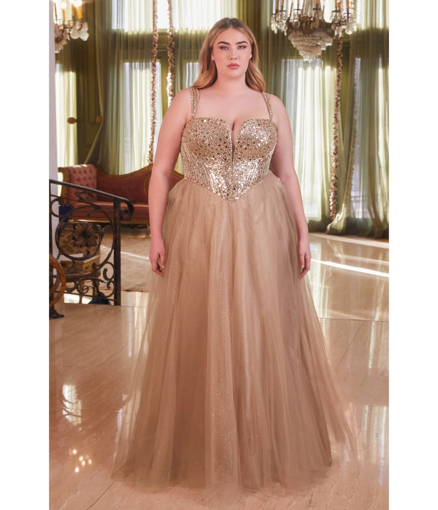 Cinderella Divine Plus Size Mocha Gold Glitter Bodice & Tulle Prom Ball Gown