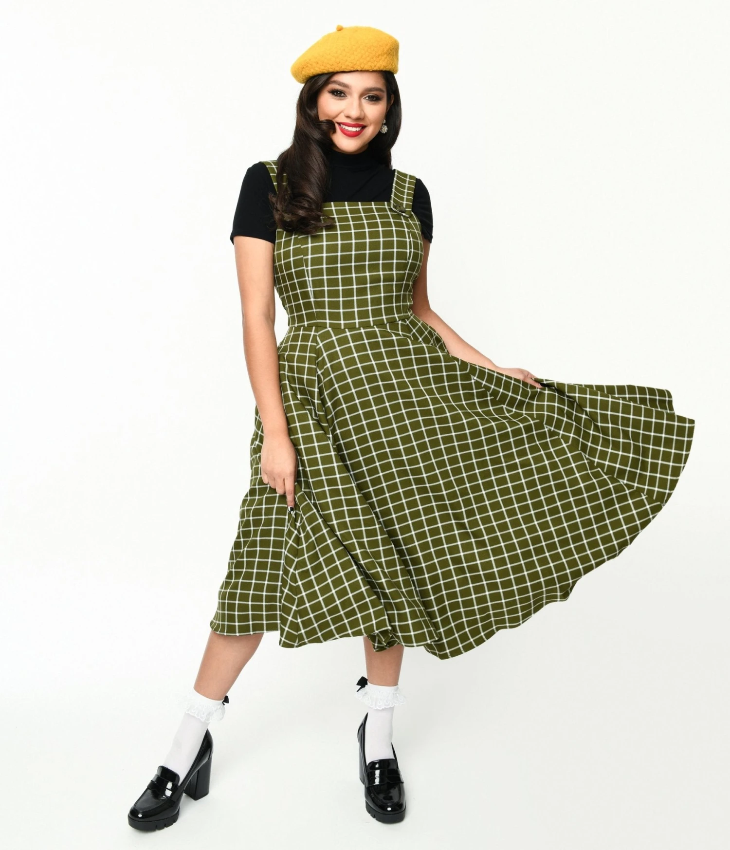 Collectif Green & White Checked Eloise Acres Swing Dress
