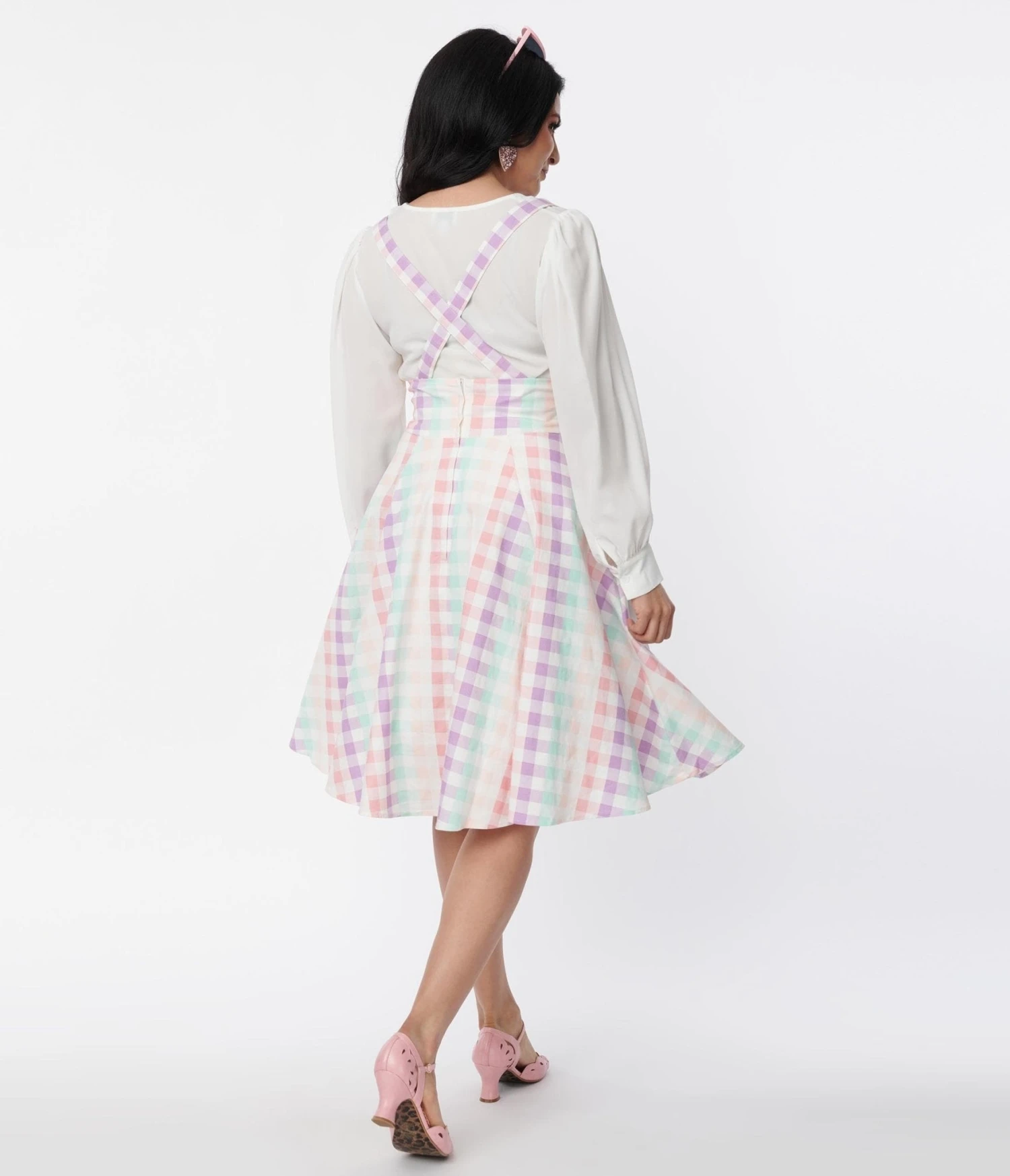 Collectif Pastel Rainbow Gingham Suspender Swing Skirt