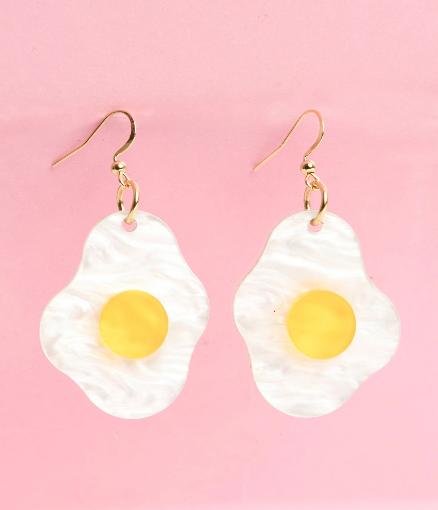 Get ready to add some egg-cellent fun to your accessories collection! These sunny side up eggs shaped acrylic earrings are sure to make a statement wherever you go. With their playful and quirky design, they bring a touch of whimsy to any outfit. The fish hook back ensures comfortable wear all day long, allowing you to flaunt your best fashionable self effortlessly.