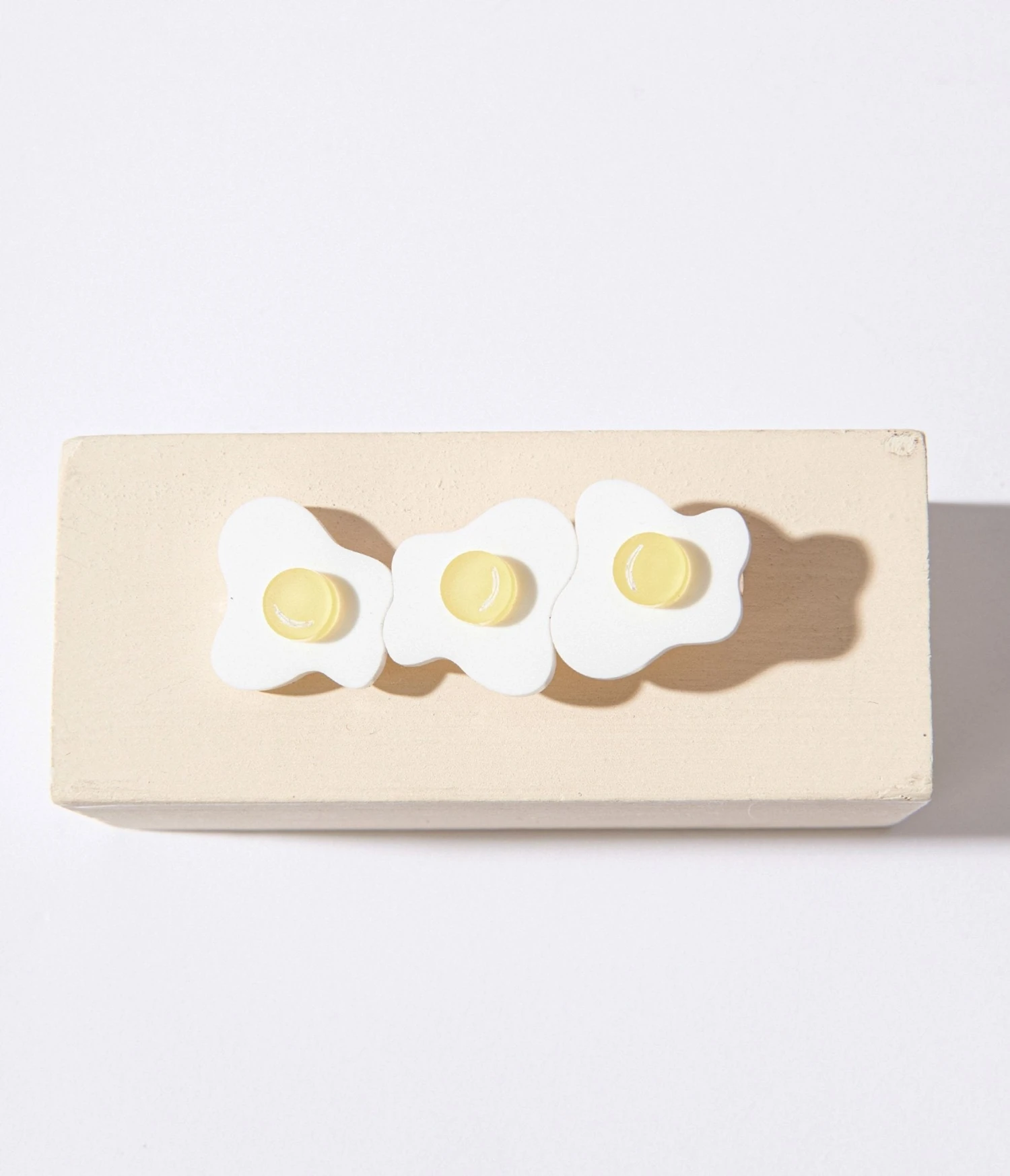 This adorable hair clip will have everyone drooling over its unique design featuring three sunny side up eggs. This clip is not only stylish but also durable, ensuring that it stays securely in place all day long. Complete with french barrette clasp.