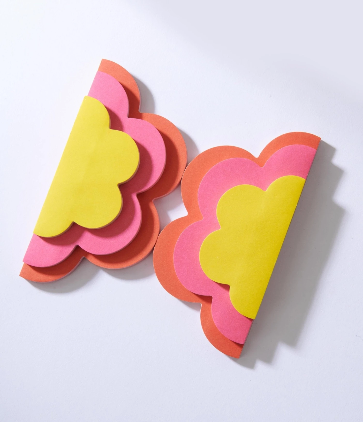 Yellow, pink, and red flower shaped sticky note stack. Complete with 6 sticky notepads and 300 sheets total.