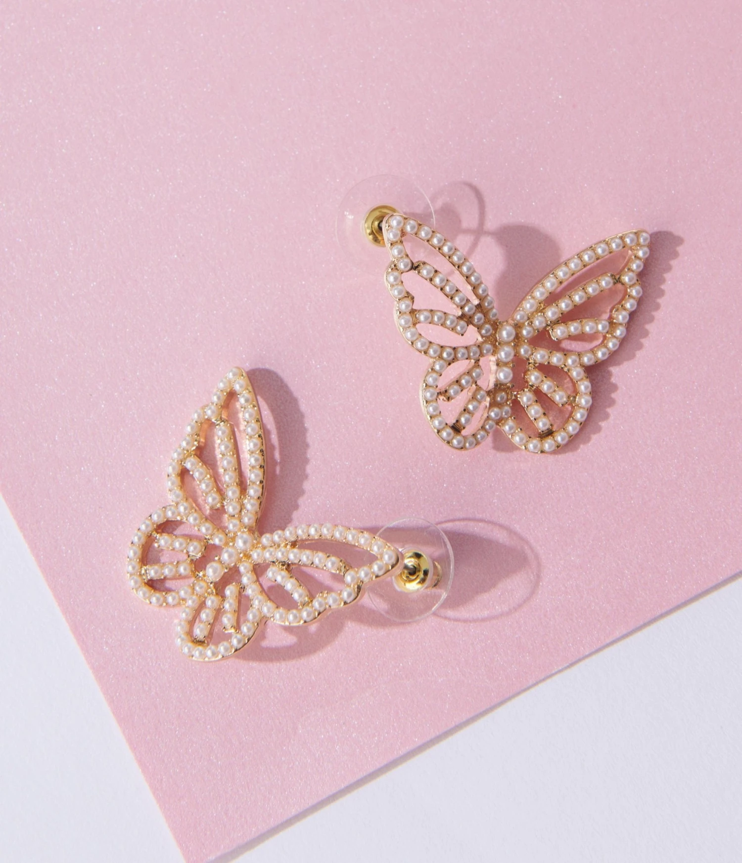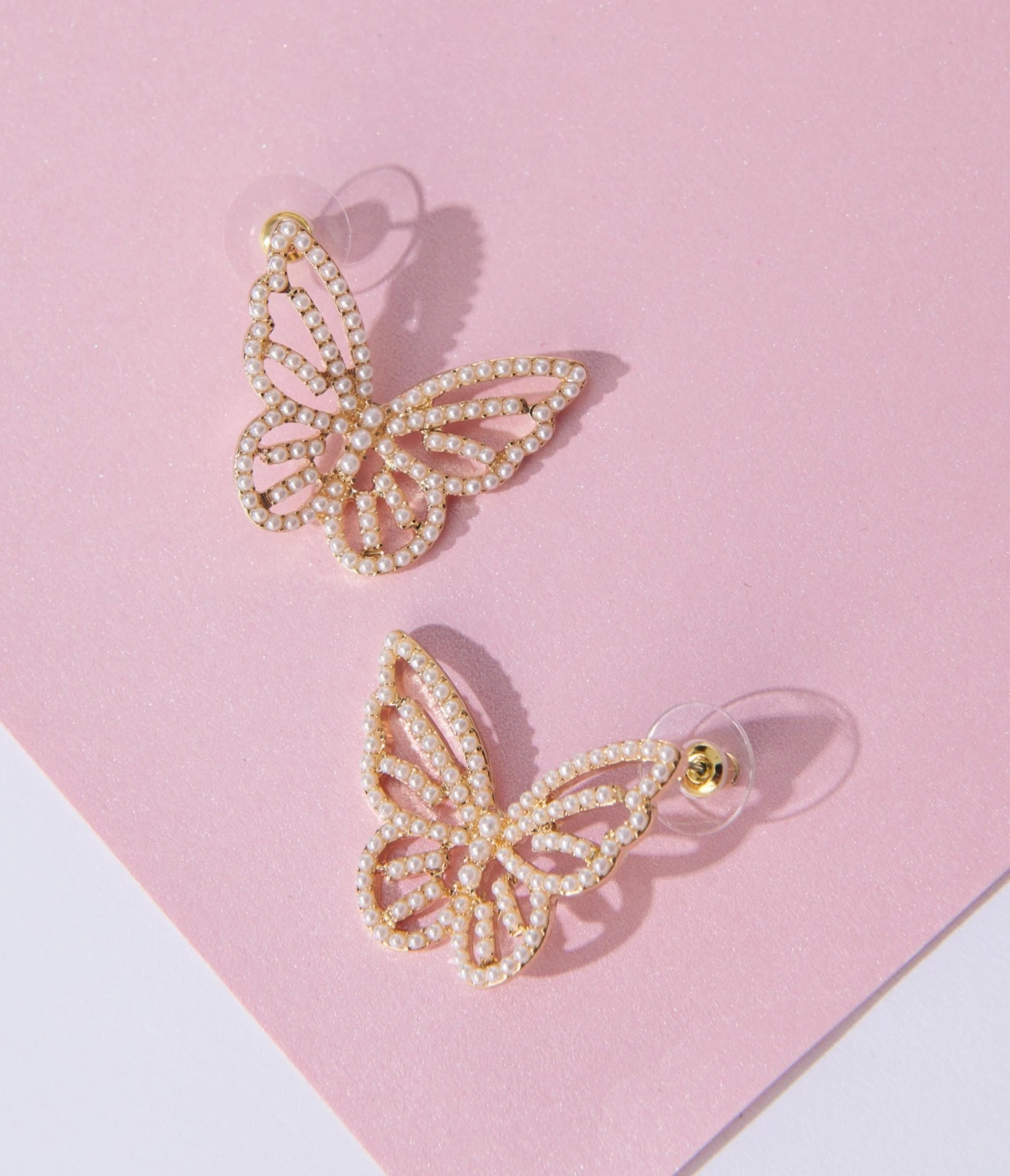 Gold & Faux Pearl Butterfly Cutout Earrings