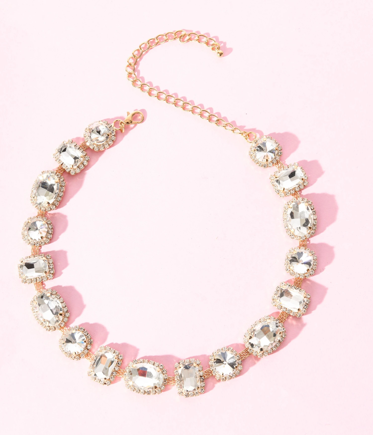 Gold & Multishape Rhinestone Necklace