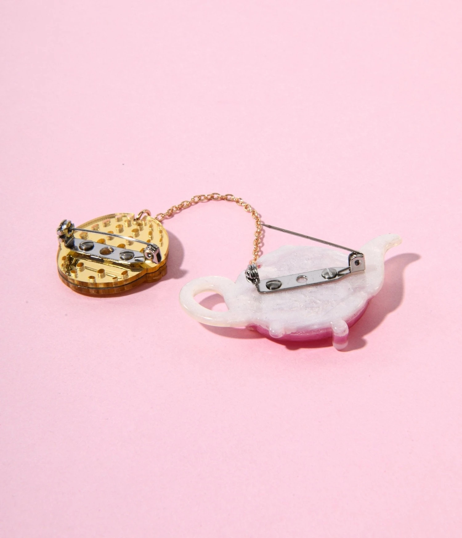 Get ready to infuse your style with a burst of energy! Shaped like a delightful vintage tea infuser, this brooch is hand-assembled using high-quality resin and skillfully finished with printing, epoxy, and etching techniques. It’s the perfect accessory for those who love unique and quirky statement pieces. Complete with a safety pin back.