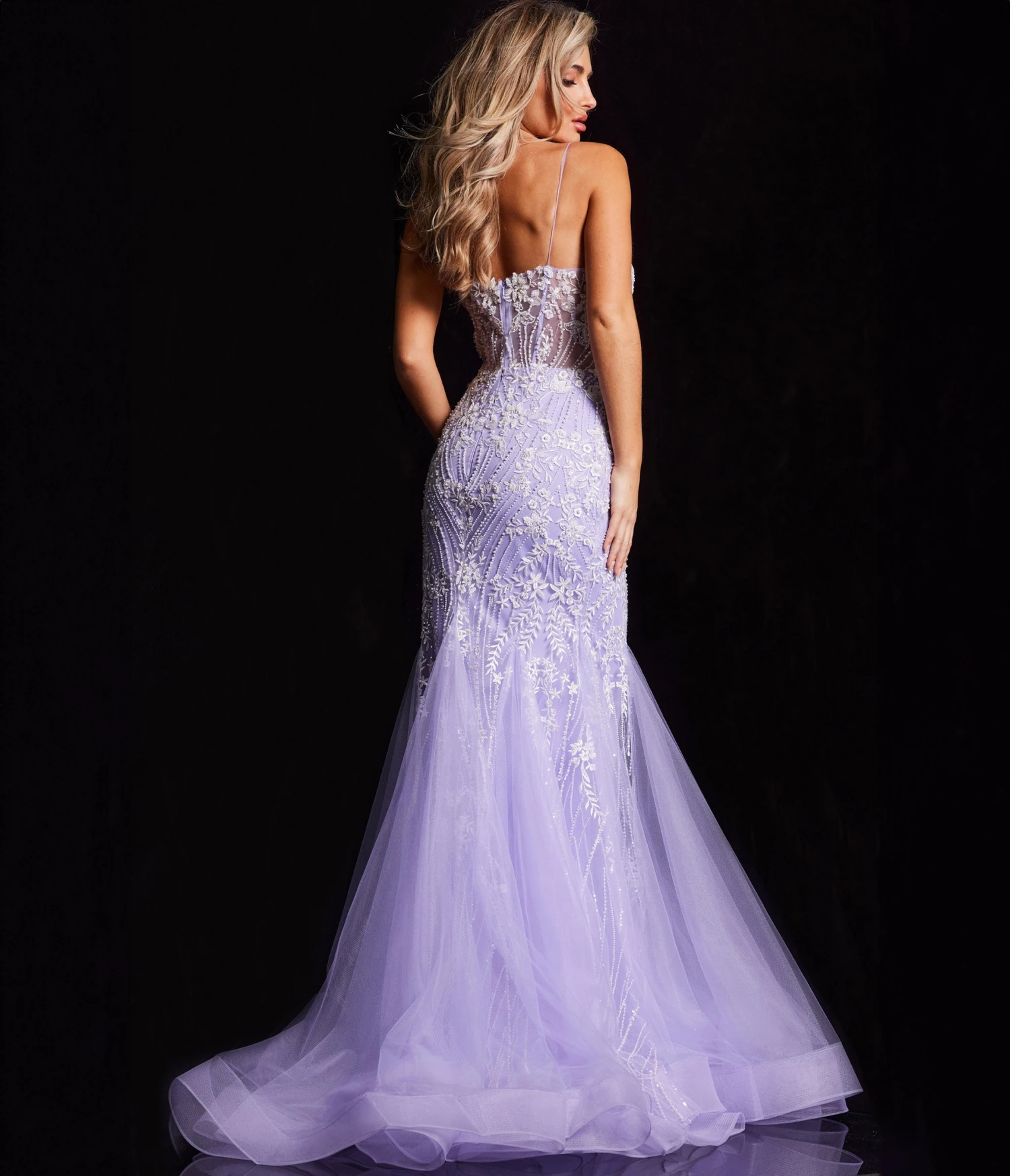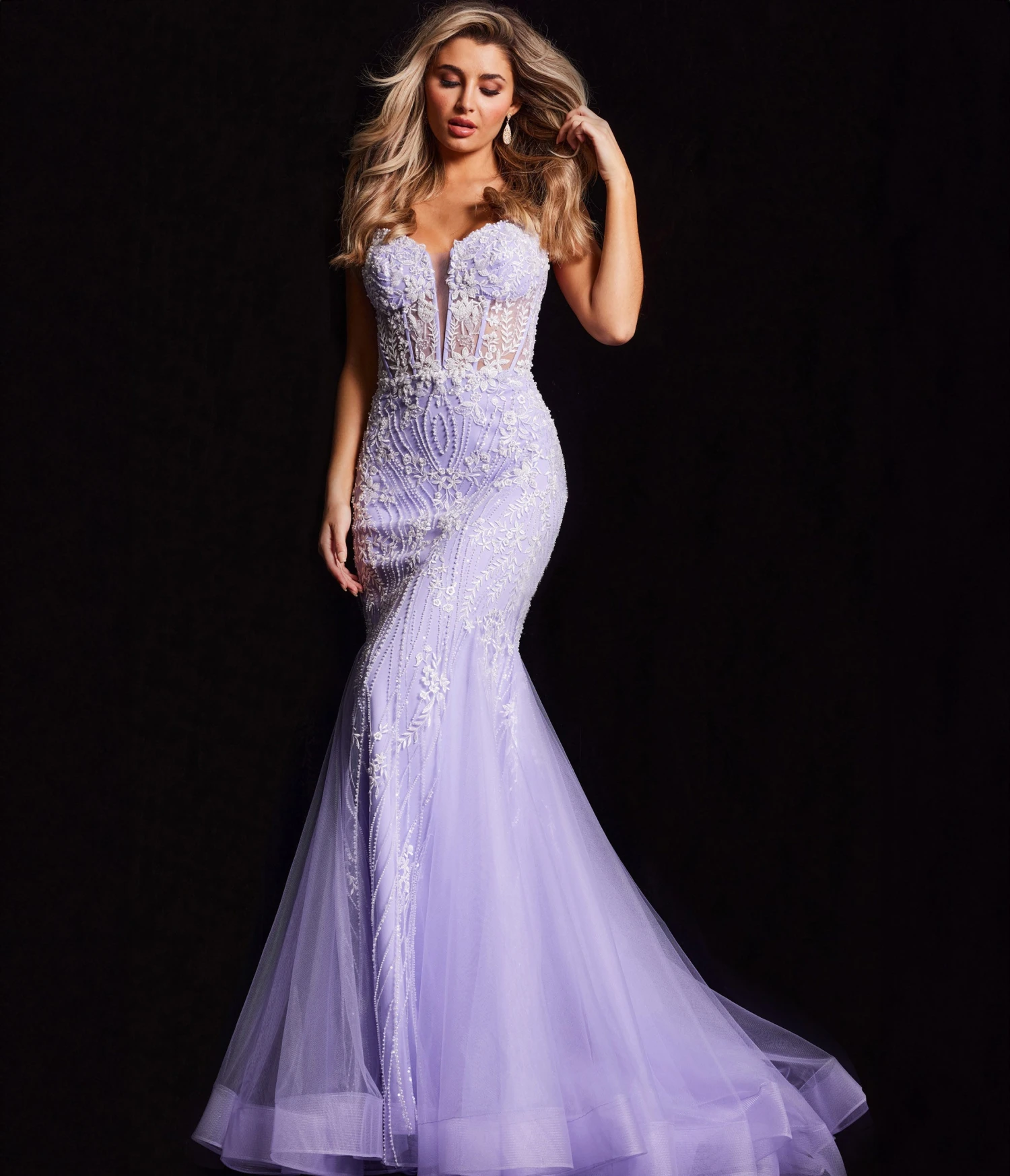 Jovani Lilac Floral Embroidered Corset Mermaid Evening Gown