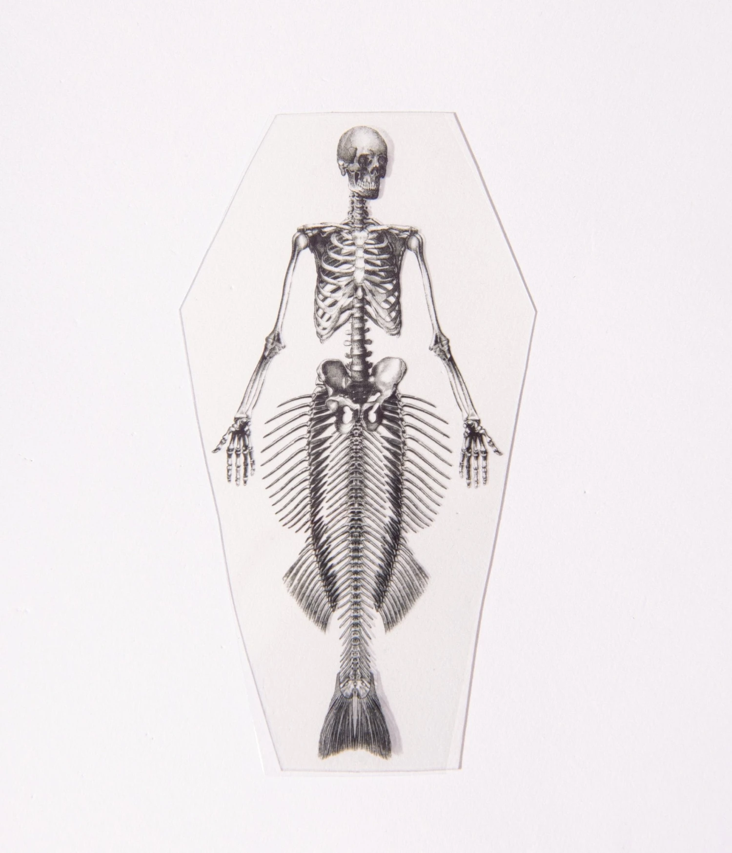 Crafted with utmost care, from Little Black Bats, this transparent marvel features the intricate and ethereal skeleton of a mesmerizing mermaid siren. Perfect for bibliophiles who seek a touch of macabre beauty, let this bookmark elegantly mark your place in any page-turner, while invoking a sense of mystery and allure. Let the mythical melodies guide you through literary adventures as you dive into realms unknown.