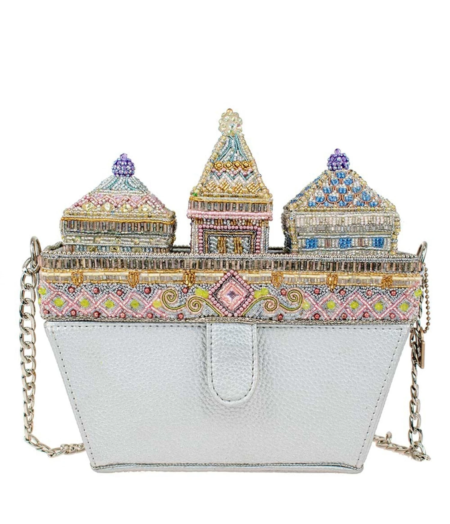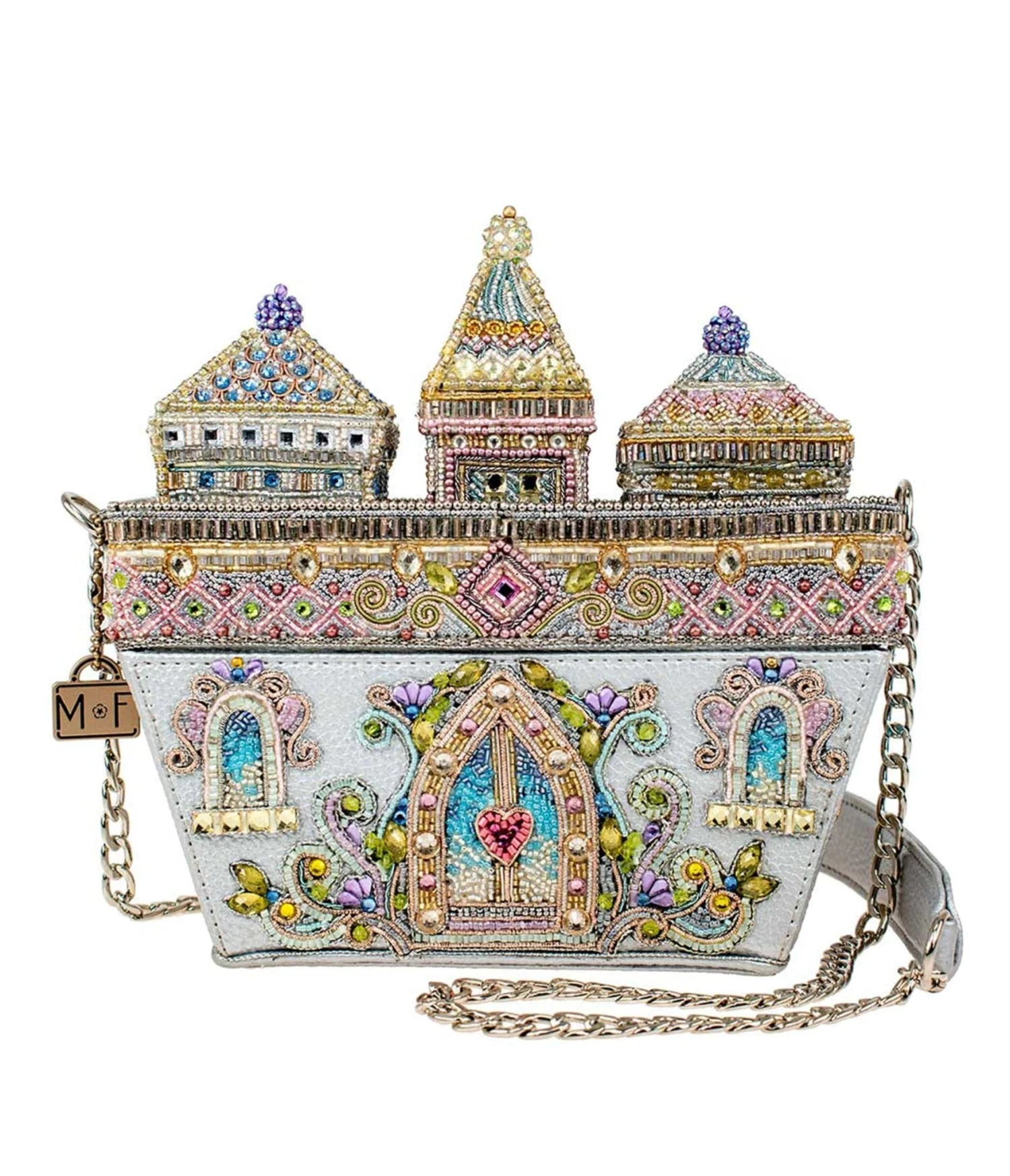 Attention royals, your dream handbag has arrived! This irresistible castle crossbody handbag from Mary Frances will charm its way into your heart with its flurry of beaded and rhinestone details. Outfitted with a padded-shoulder crossbody chain strap, an inner pocket, and a magnetic closure.