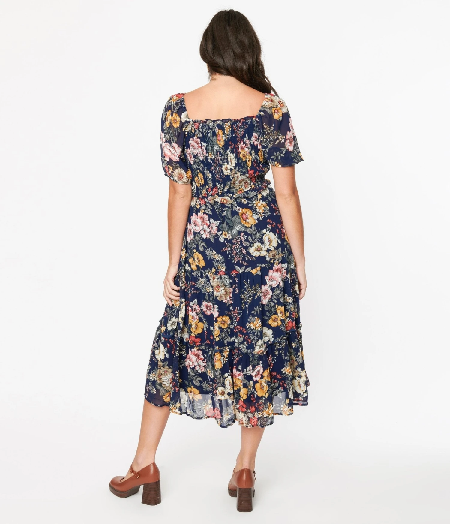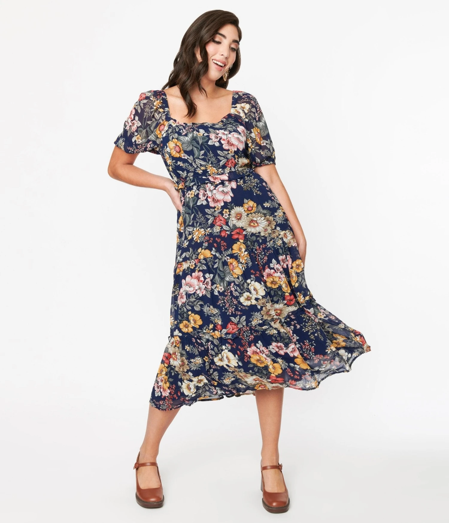 Be the first to review “Navy Blue Floral Puff Sleeve Midi Dress” Cancel reply