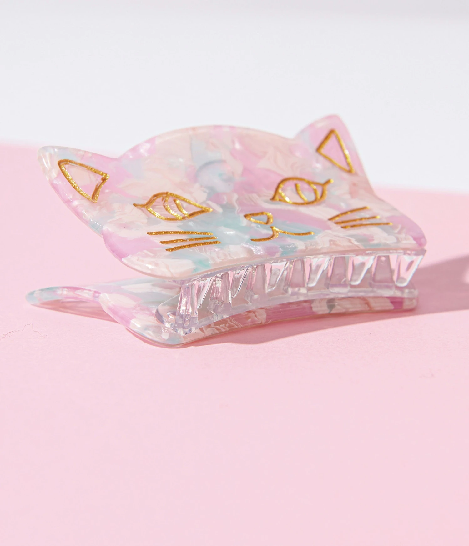 This enchanting hair accessory combines a delightful blend of pastel blue and purple marble acrylic, creating an ethereal, one-of-a-kind look. Shaped like an adorable cat with intricate gold details, this claw is the ultimate statement piece for fashion-forward individuals who crave excitement in their style.