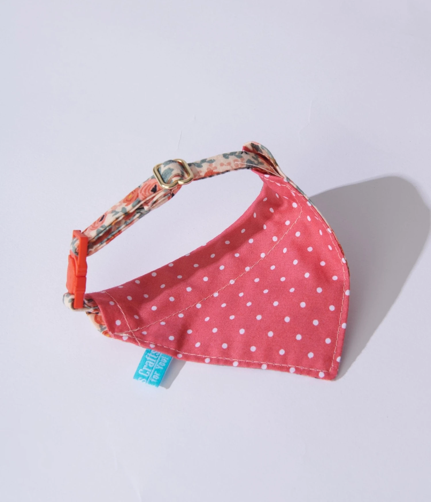 An adorable accessory for your cat, this cotton bandana features charming florals throughout the peach backdrop. Complete with an adjustable collar and cat-shaped breakaway buckles.
