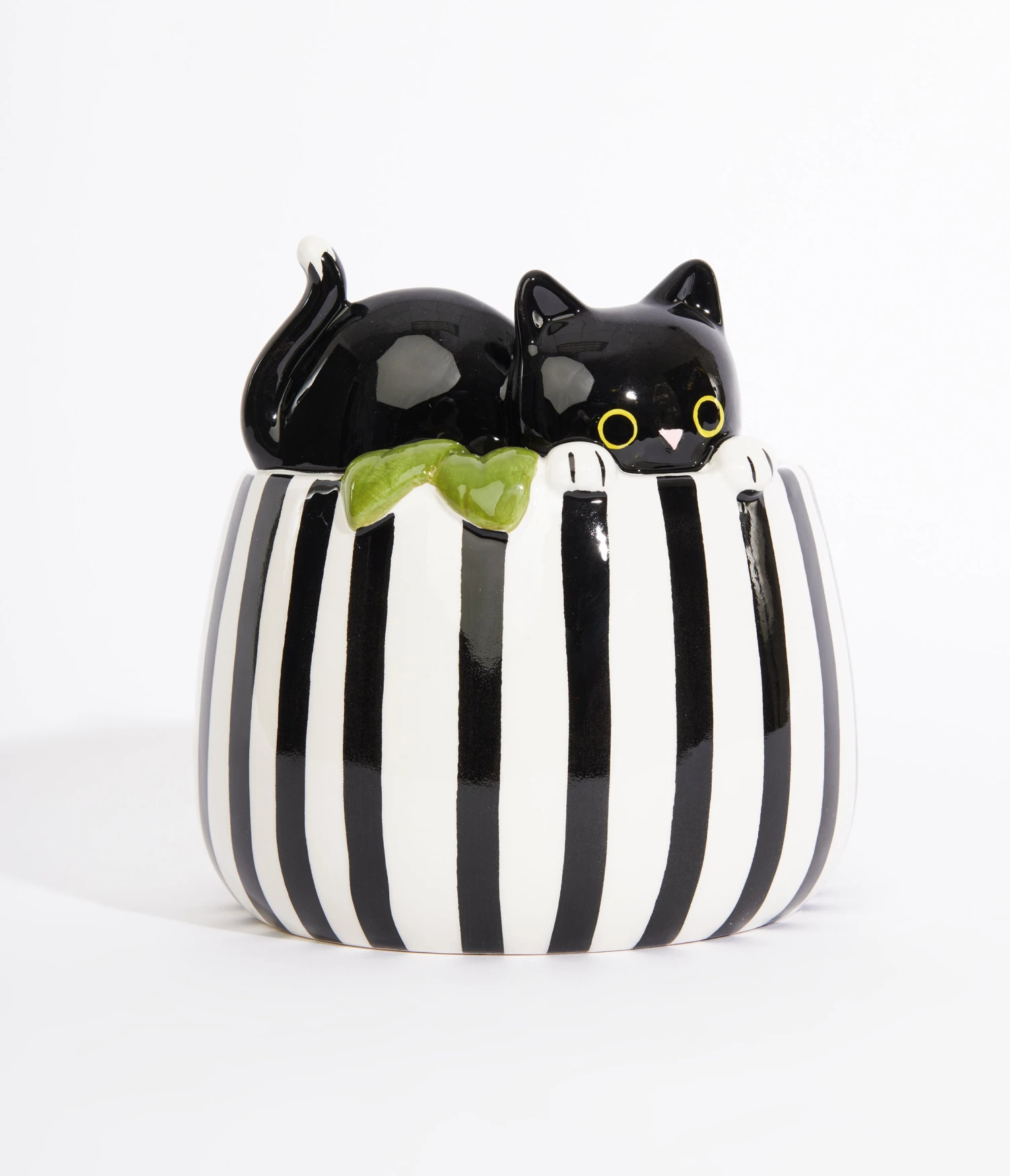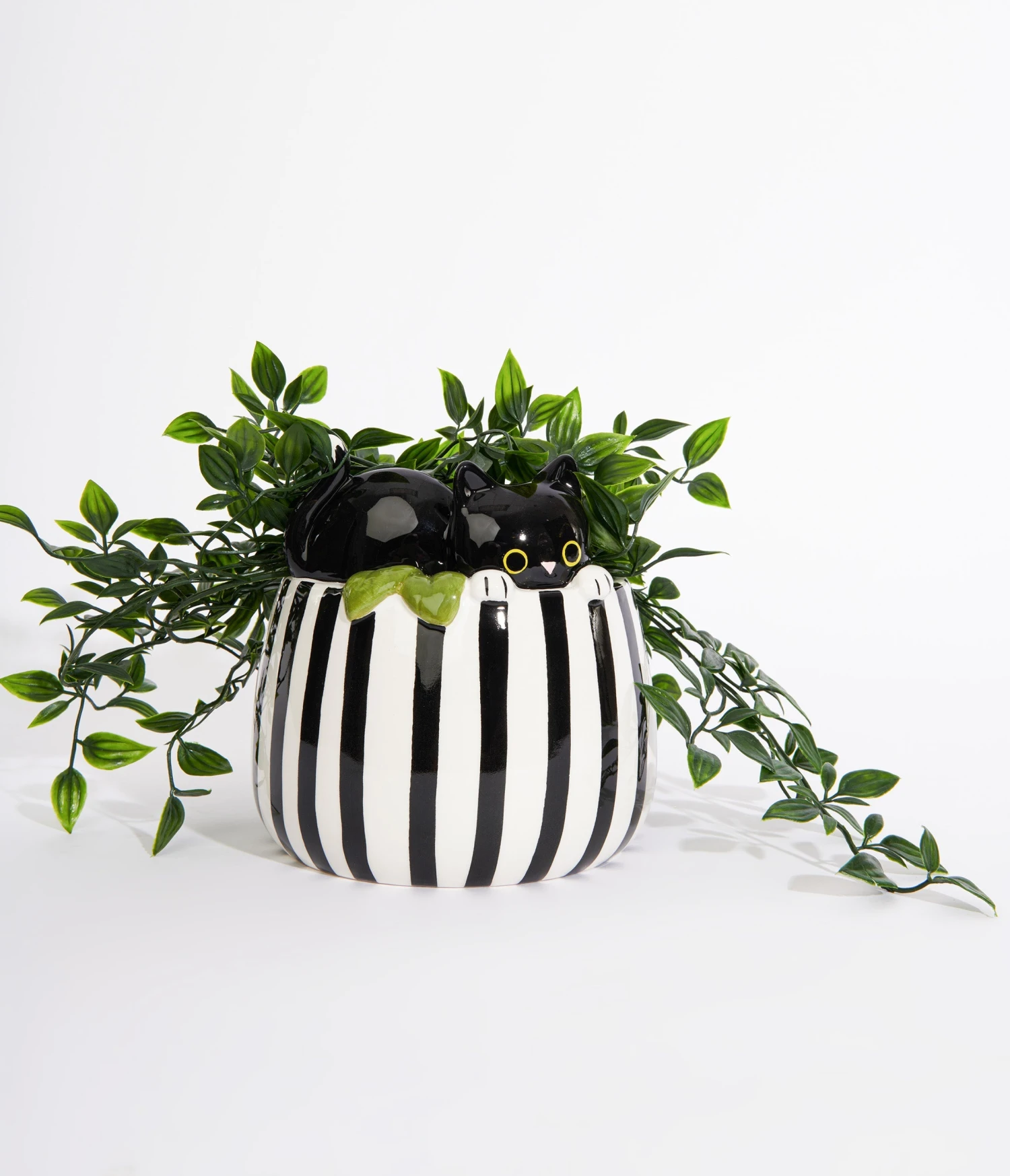 With its classic black and white stripes, this charming planter will add a touch of playful elegance to any space. This little kitty is ready to hold your favorite plant or succulent, bringing life and joy into your home or office. Made from high-quality materials, it’s durable and designed to withstand the test of time.