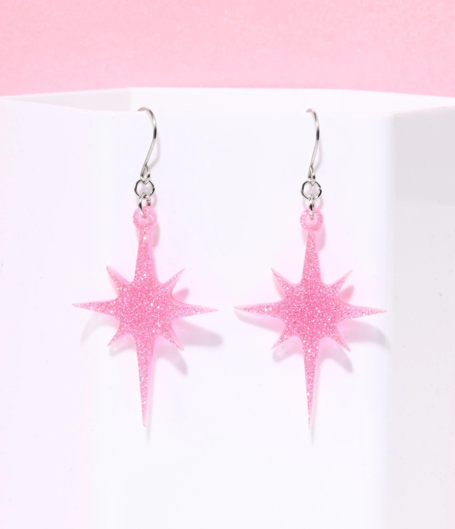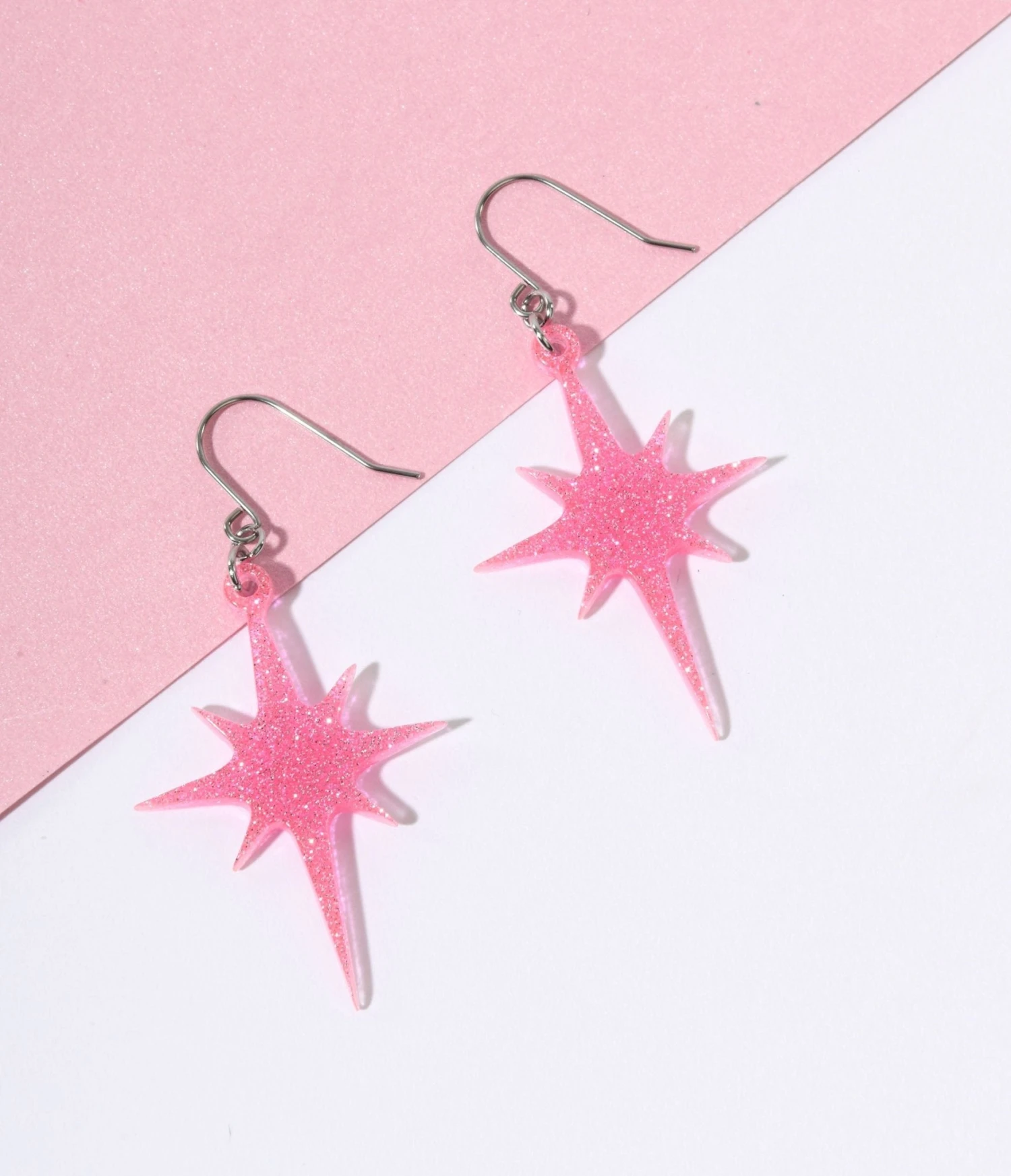Be the first to review “Pink Glitter Atomic Star Dangle Earrings” Cancel reply