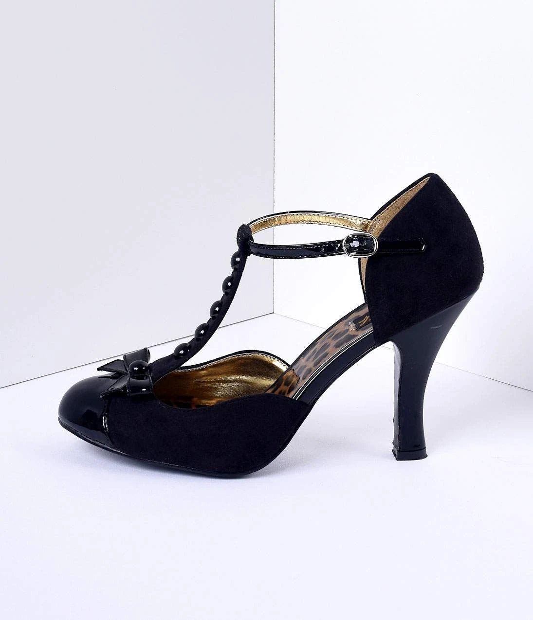 Add a sexy, pinup flair to any formal outfit with these prim and proper black microsuede T-strap heels. Inspired by women’s footwear from the 1920s, these adorable shoes feature 4-inch heels that will make your legs look long and lean, and T-straps on top that are covered with a row of delicate buttons. Add a sweet bow at the toe as a finishing touch and you can be sure that you won’t find a pair of shoes more perfectly retro than these black vintage T-strap heels from Unique Vintage. Please note these shoes have a 2-3 day handling time before they will ship from our warehouse and there is a 10% restocking fee if you choose to return.