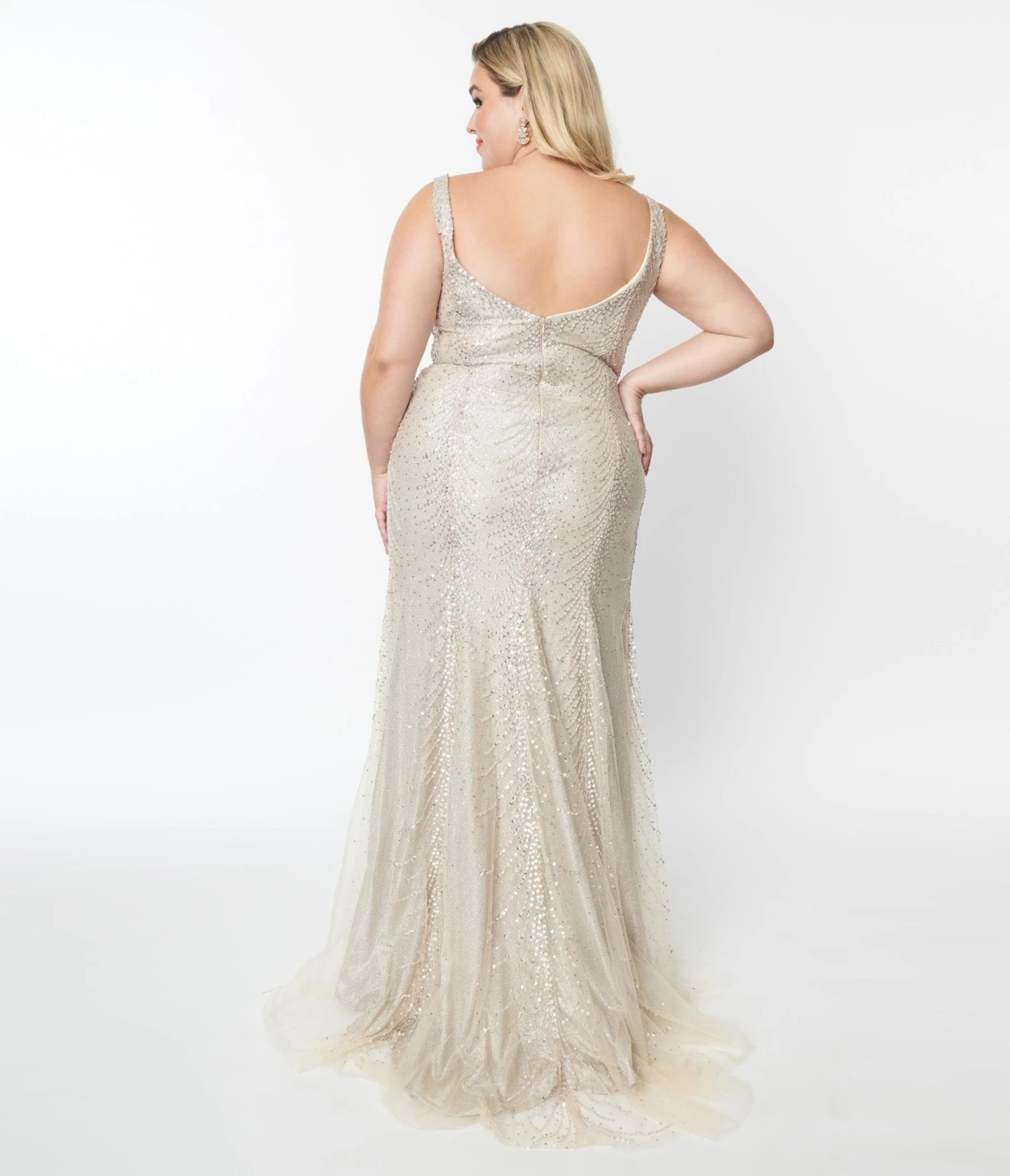 Plus Size Champagne Beaded Deco Harlow Wedding Dress