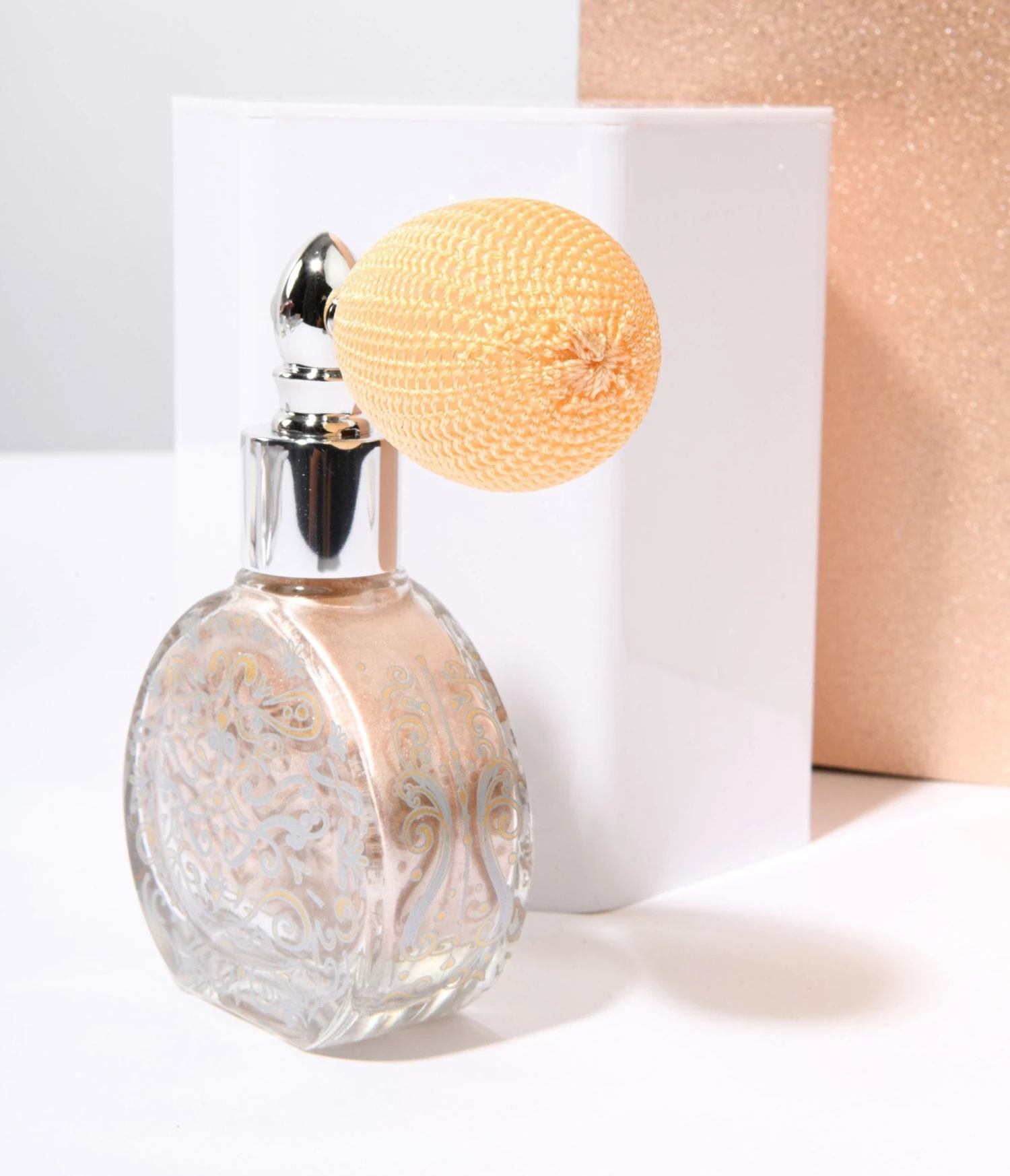 Get ready to sparkle and shine! This silky smooth powder in rose gold is packed with light-reflecting pearls, giving you a radiant finish that’s sure to turn heads. Whether you’re looking to highlight your face, add some shimmer to your hair, or dust your décolletage and body for a special occasion, this versatile product has got you covered. The super fine shimmer creates a sophisticated glow from head to toe, leaving you feeling like the belle of the ball. Housed in an elegant antique component, this weightless formula lightly dusts onto your skin for a flawless and glamorous effect.