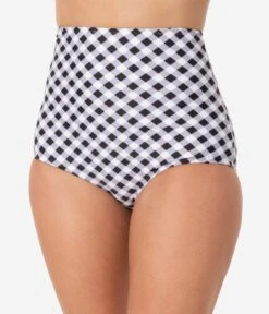 Unique Vintage Black & White Gingham High Waist Louise Swim Bottoms