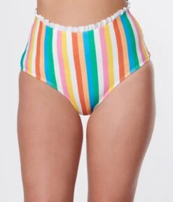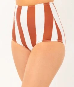 Unique Vintage Tropical Print & Red Hibiscus Monroe High Waist Swim Bottom