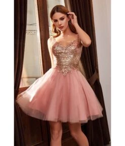Cinderella Divine Rose Gold Glitter Ruffled Mini Homecoming Dress