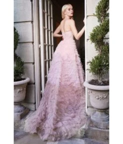 Cinderella Divine Burgundy Satin Strapless Keyhole Evening Gown