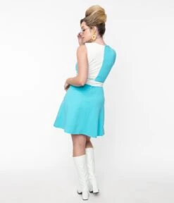 Voodoo Vixen Aqua Blue & White Mod Colorblock Shift Dress