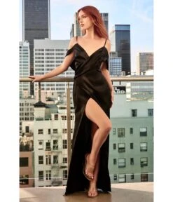 Cinderella Divine Black Satin Draped Cowl Back Bridesmaid Dress