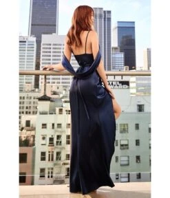 Cinderella Divine Navy Satin Draped Cowl Back Bridesmaid Dress