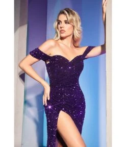 Cinderella Divine Purple Velvet Glittering Sequin Bridesmaid Gown
