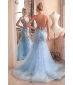 Cinderella Divine Light Blue Floral & Beaded Corset Mermaid Gown