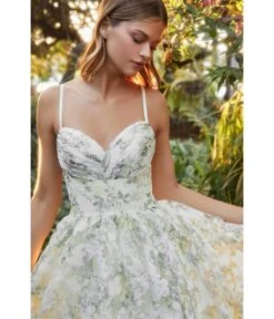 Cinderella Divine Green Romantic Floral Organza Tea Length Bridesmaid Gown