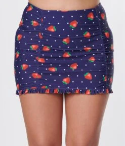 Corpse Bride X Unique Vintage Plus Size Blue & Flying Skulls Ruffle Swim Bottom