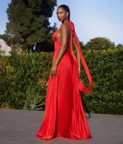 Cinderella Divine Red Satin Strapless Corset Lace Up Back Evening Gown