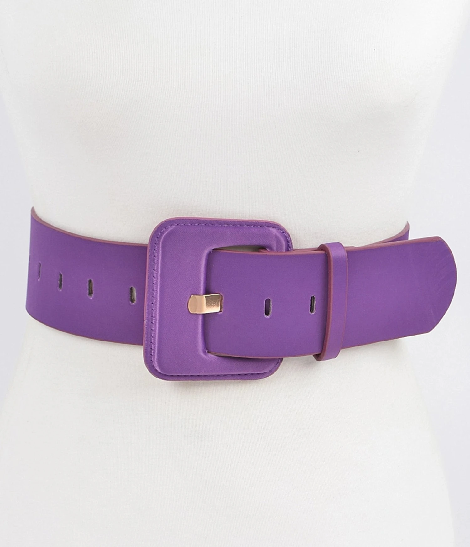 This lovely belt is crafted in a purple faux micro suede and secured with a rectangular pin buckle.