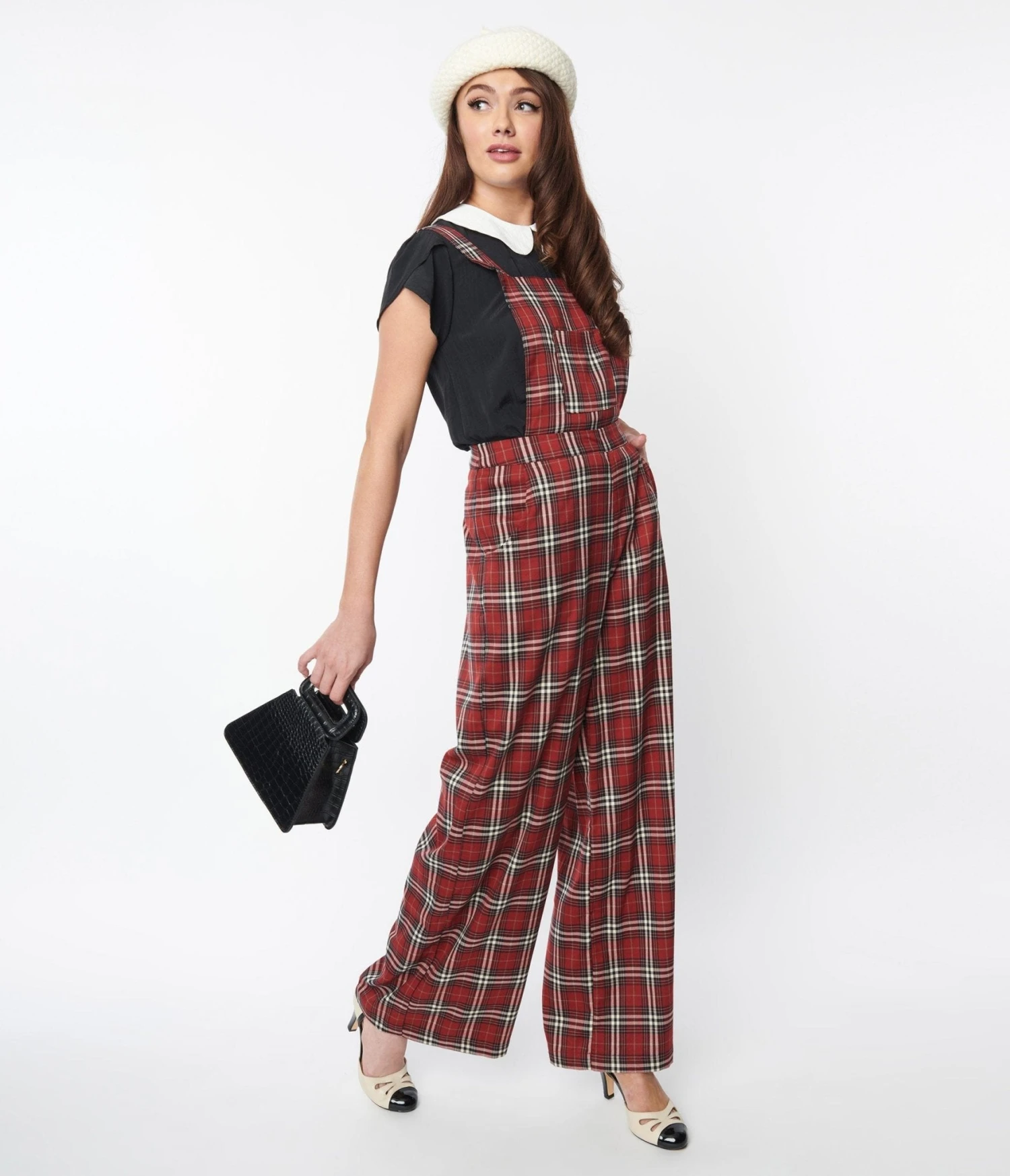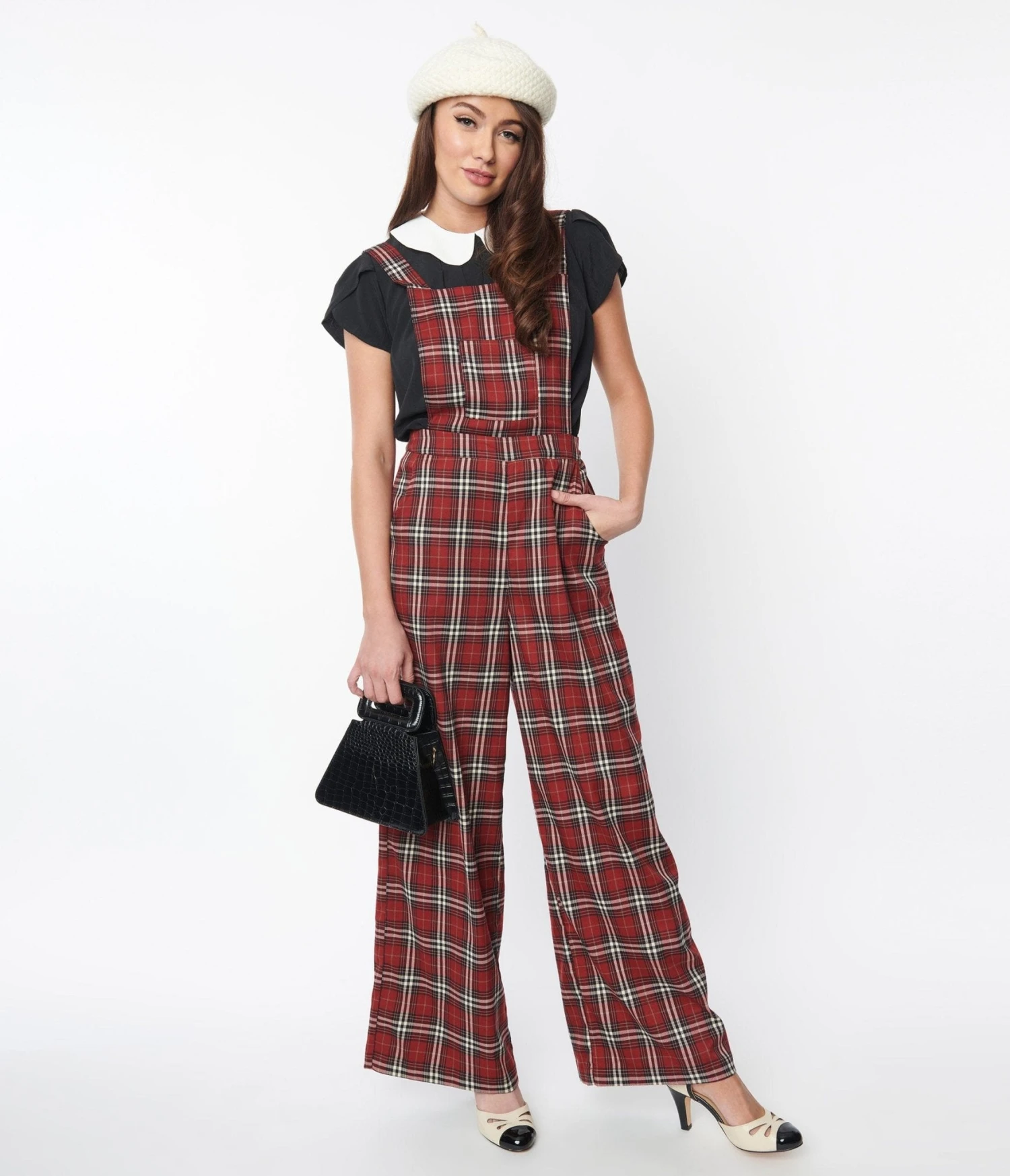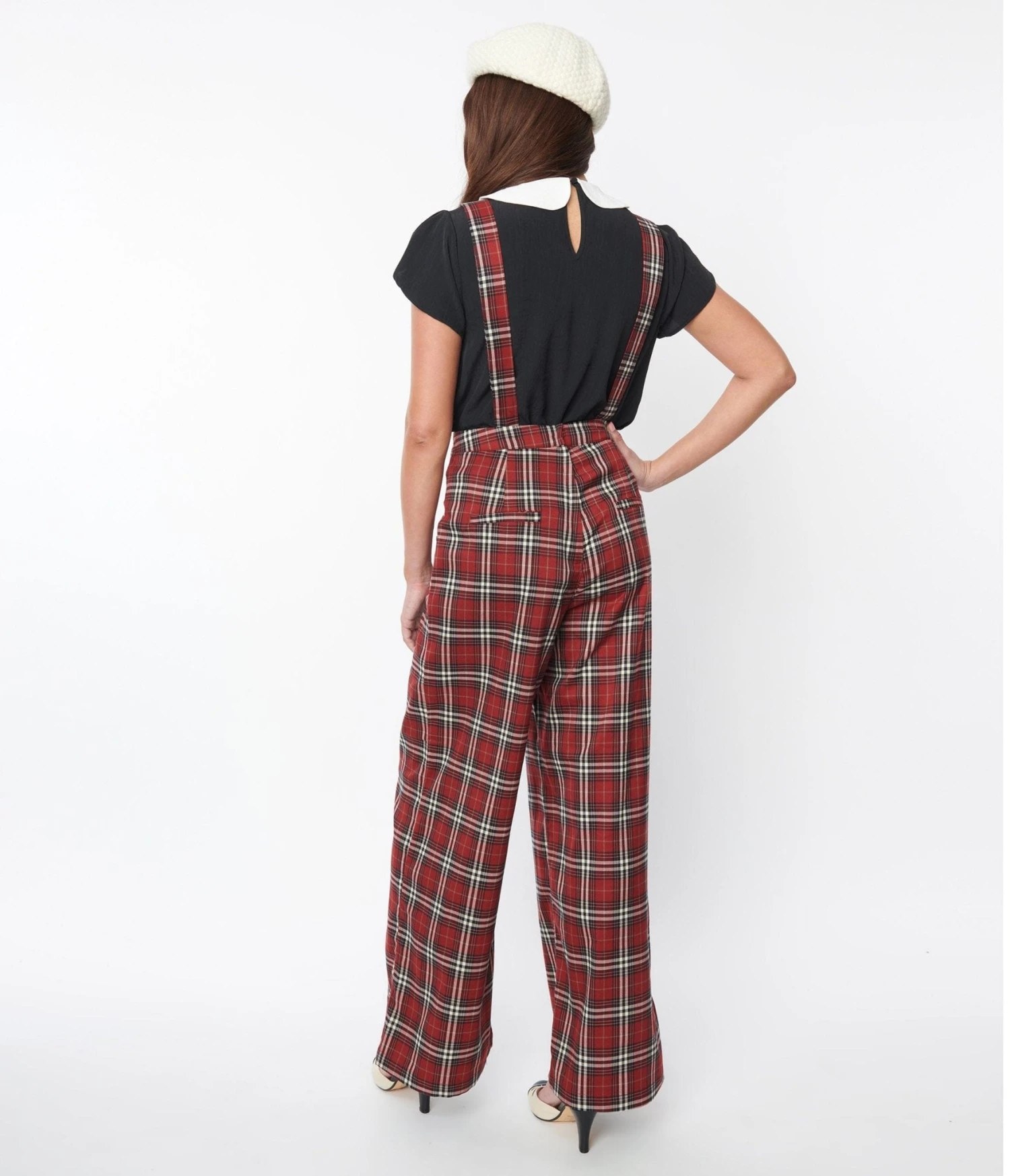 Red & White Winter Plaid Pinafore Jumpsuit