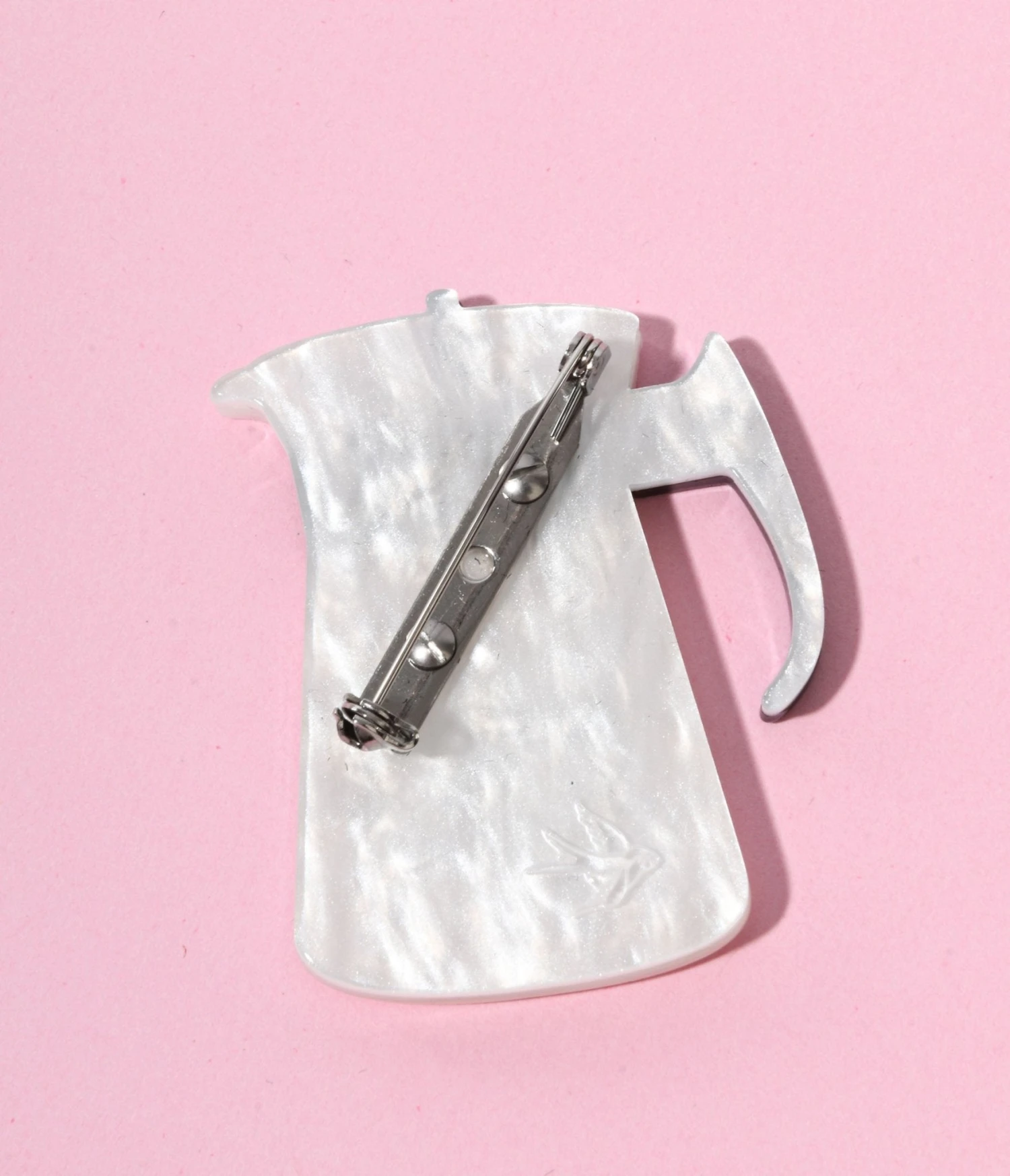 Hey there, coffee enthusiasts! Get ready to jazz up your outfit with this charming brooch. Inspired by the retro white glass atomic coffee pots of yesteryear, this funky accessory is a must-have for any fashion-forward caffeine lover. Beautifully hand-assembled from durable resin, each brooch is meticulously crafted with a combination of printing, epoxy, and etching techniques – ensuring exceptional quality that lasts. Complete with a safety pin back.