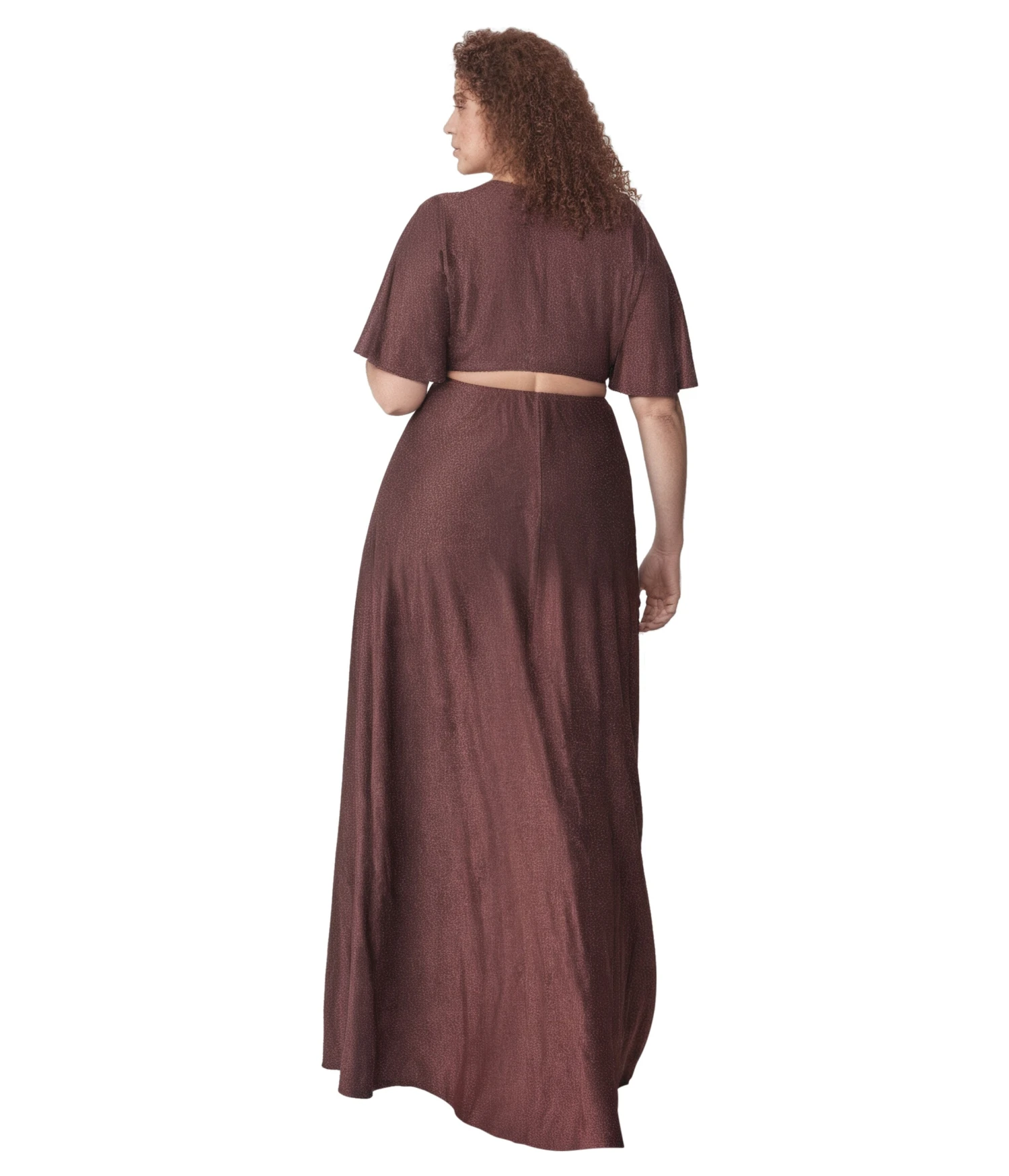 Glide on the dance floor with this fabulous 1970’s style plus size maxi dress from Smak Parlour, crafted in a shimmering rose pink and black lurex knit that features a short sleeve silhouette with a cutout detail on the sides and lower back. Boasting a deep v-neckline that leads to a ring detail on the bust.