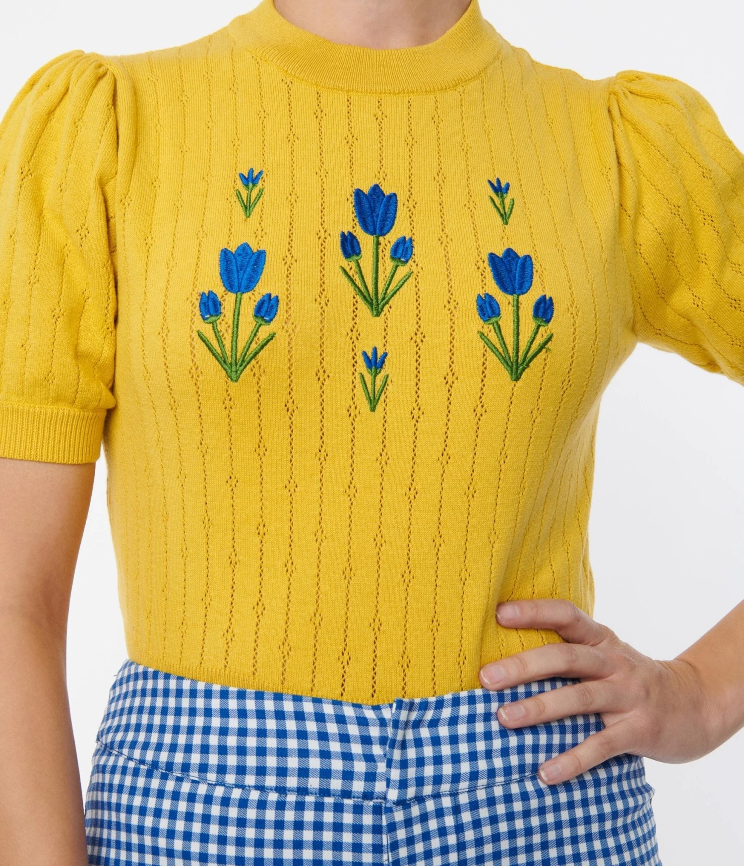 Smak Parlour Yellow Tulip Embroidered Sweater