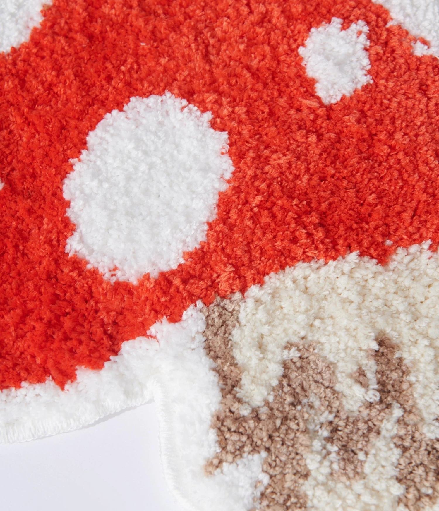 There may not be mushroom in your room, but this adorable red and white toadstool shag mat is the perfect addition to your space!