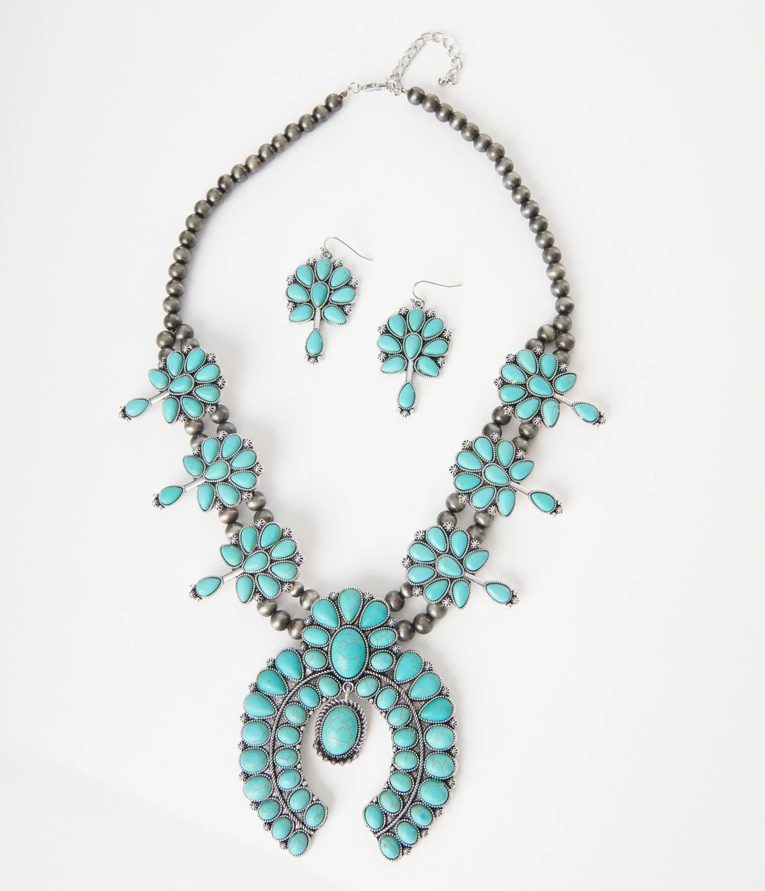 Turquoise Western Statement Necklace & Earrings Set