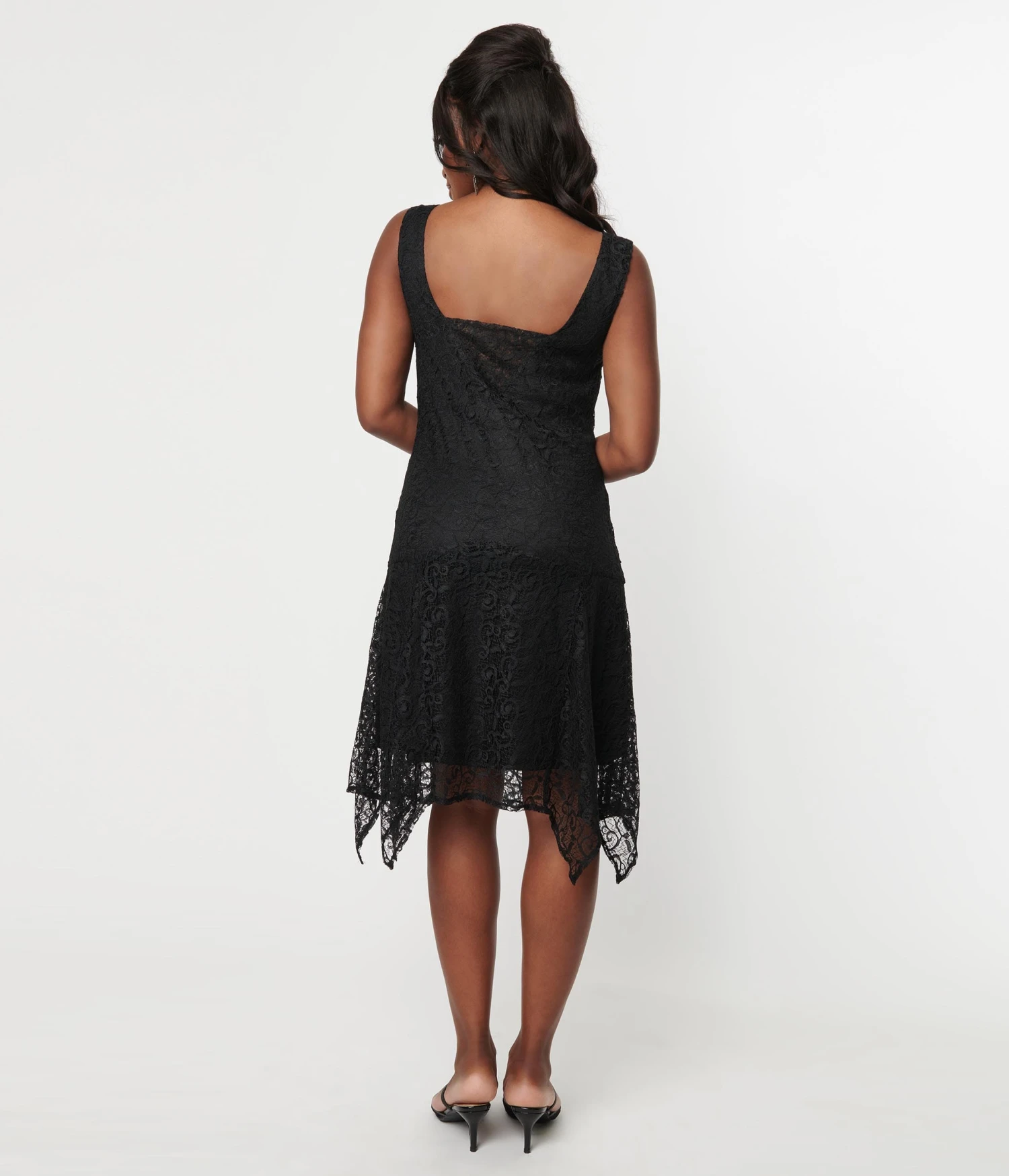 Unique Vintage 1920s Black Lace Hemingway Flapper Dress