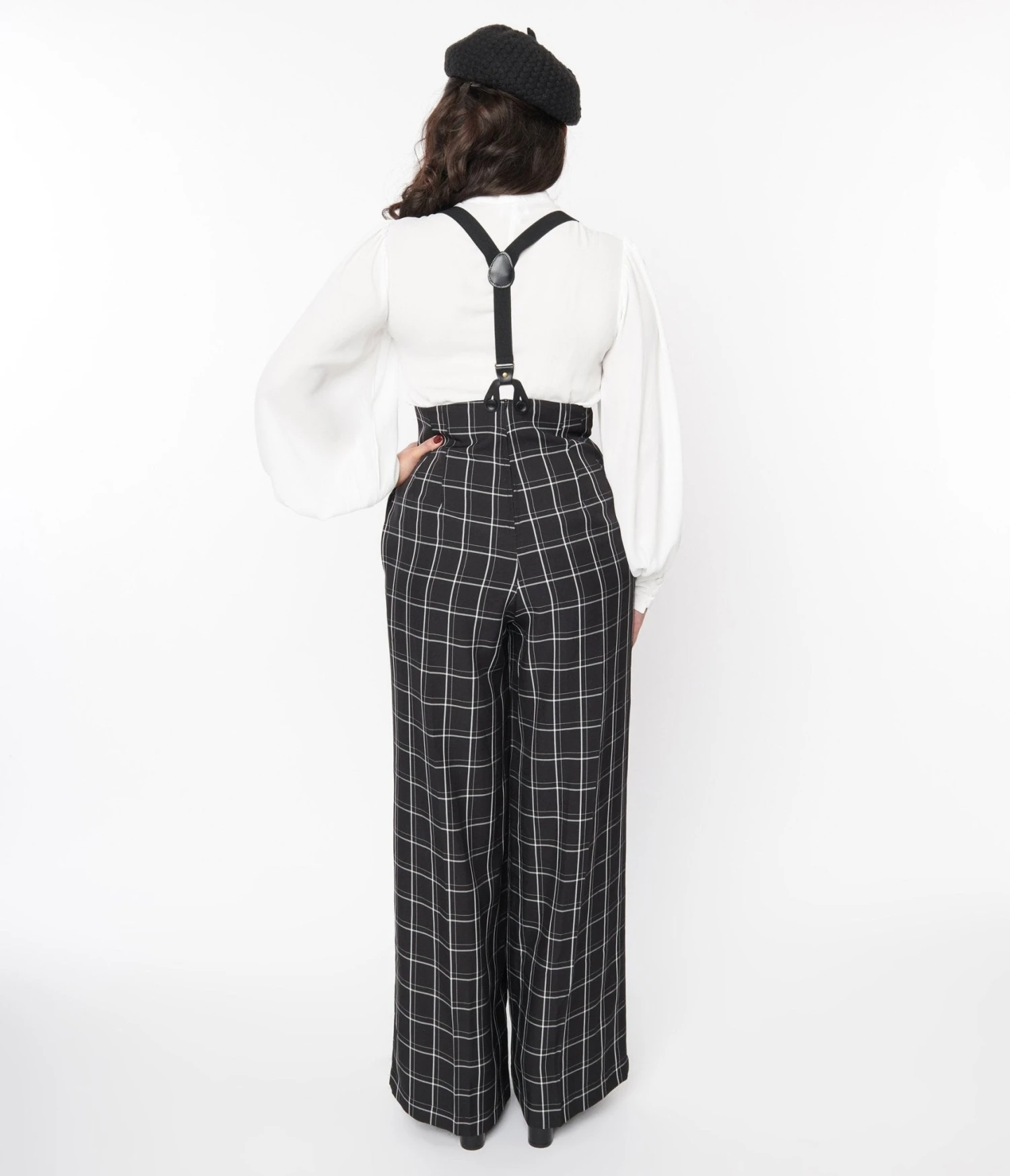 Be the first to review “Unique Vintage Black Windowpane Plaid High Waist Suspender Trouser” Cancel reply