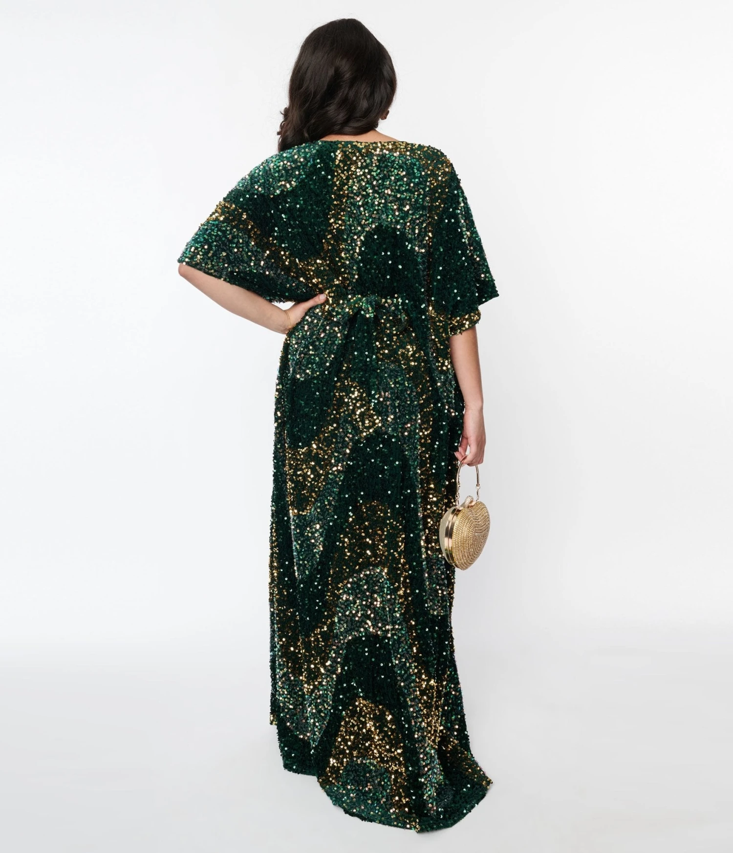 Unique Vintage Emerald & Gold Sequin Burton Caftan Dress